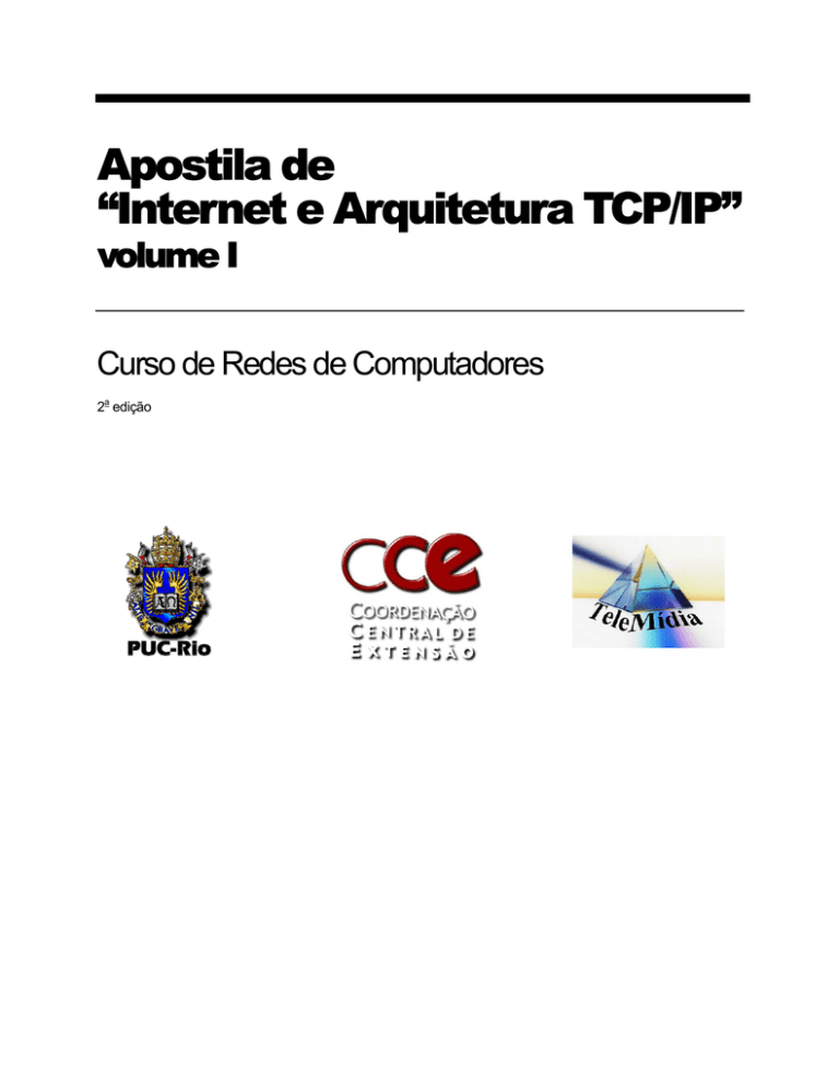 Apostila de “Internet e Arquitetura TCP/IP” volume I Curso de Redes de Computadores 2a edição CURSO REDES DE COMPUTADORES - INTERNET E ARQUITETURA TCP/IP - PUC RIO/CCE 2 1. Conceitos de Internet e TCP/IP A Internet é uma rede pública de comunicação de dados, com controle descentralizado e que utiliza o conjunto de protocolos TCP/IP como base para a estrutura de comunicação e seus serviços de rede. Isto se deve ao fato de que a arquitetura TCP/IP fornece não somente os protocolos que habilitam a comunicação de dados entre redes, mas também define uma série de aplicações que contribuem para a eficiência e sucesso da arquitetura. Entre os serviços mais conhecidos da Internet estão o correio-eletrônico (protocolos SMTP, POP3), a transferência de arquivos (FTP), o compartilhamento de arquivos (NFS), a emulação remota de terminal (Telnet), o acesso à informação hipermídia (HTTP), conhecido como WWW (World Wide Web). A Internet é dita ser um sistema aberto uma vez que todos os seus serviços básicos assim como as aplicações são definidas publicamente, podendo ser implementadas e utilizadas sem pagamento de royalties ou licenças para outras instituições. O conjunto de protocolos TCP/IP foi projetado especialmente para ser o protocolo utilizado na Internet. Sua característica principal é o suporte direto a comunicação entre redes de diversos tipos. Neste caso, a arquitetura TCP/IP é independente da infra-estrutura de rede física ou lógica empregada. De fato, qualquer tecnologia de rede pode ser empregada como meio de transporte dos protocolos TCP/IP, como será visto adiante. Alguns termos utilizados frequentemente, são explicados de forma resumida adiante: • A Internet (nome próprio) é a denominação da rede mundial que interliga redes no mundo. É formada pela conexão complexa entre centenas de milhares de redes entre si. A Internet tem suas políticas controladas pelo IAB (Internet Architecture Board), um fórum patrocinado pela Internet Society, uma comunidade aberta formada por usuários, fabricantes, representantes governamentais e pesquisadores. • Um internet é um termo usado para definir uma rede genérica formada pela interligação de redes utilizando o protocolo TCP/IP. • Uma intranet é a aplicação da tecnologia criada na Internet e do conjunto de protocolos de transporte e de aplicação TCP/IP em uma rede privada, interna a uma empresa. Numa intranet, não somente a infraestrutura de comunicação é baseada em TCP/IP, mas também grande quantidade de informações e aplicações são disponibilizadas por meio dos sistemas Web (protocolo HTTP) e correio-eletrônico. • Uma extranet, ou extended intranet é a extensão dos serviços da intranet de uma empresa para interligar e fornecer aplicações para outras empresas, como clientes, fornecedores, parceiros, etc… Desta forma a extranet é a utilização de tecnologias como Web e correio-eletrônico para simplificar a comunicação e a troca de informações entre empresas. • World Wide Web é a designação do conjunto de informações públicas disponibilizadas na Internet por meio do protocolo HTTP. É o somatório das informações que podem ser acessadas por um browser Web na Internet. As informações internas de uma empresa que são acessíveis via um browser Web são enquadradas no termo intranet. Evolução de TCP/IP e Internet Em 1966, o Departamento de Defesa do governo americano iniciou, através de sua agência DARPA (Defense Advanced Research Projects Agency) projetos para a interligação de computadores em centros militares e de pesquisa, com o objetivo de criar um sistema de comunicação e controle distribuído com fins militares. Esta iniciativa teve como um dos motivadores o surgimento de mini-computadores com grande poder de processamento, que poderiam ter seu emprego enriquecido com o acesso a uma grande rede de CURSO REDES DE COMPUTADORES - INTERNET E ARQUITETURA TCP/IP - PUC RIO/CCE 3 comunicação. Esta rede recebeu o nome de ARPANET. O principal objetivo teórico da ARPANET era formar uma arquitetura de rede sólida e robusta que pudesse sobreviver a uma perda substancial de equipamento e ainda operar com os computadores e enlaces de comunicação restantes. Para alcançar este objetivo, o sistema de comunicação deveria suportar diversos tipos de equipamentos distintos, ser dividido em diversos níveis de protocolos distintos para permitir a evolução independente de cada um deles e ser baseado em transferência de pacotes de informação. Durantet a década de 70 até 1983, a ARPANET era baseada em IMPs (Interface Message Processors), rodando diversos protocolos, sendo o principal o NCP (Network Control Protocol). O TCP/IP ainda estava sendo projetado e a Internet era formada por máquinas de grande porte e minicomputadores ligados aos IMPs. O roteamento fora dos IMPS não existia, impedindo a conexão de máquinas em rede local que surgiam. Ou seja, para se ligar à ARPANET era necessária a ligação direta a um IMP. Nesta época, os computadores com potencial para se ligar na rede eram de grande porte e em número reduzido. As diferenças de porte desta rede imaginada na época e o que se observa hoje é gigantesco. Um dos projetistas dos sistemas de comunicação da ARPANET, referindo-se ao tamanho de um byte para os identificadores das máquinas, afirmou que “256 máquinas é essencialmente infinito”. No começo de 1980, a ARPANET foi dividida em ARPANET e MILNET, separando a porção acadêmica e militar. Nesta época, a ARPA decidiu adotar o Unix como sistema operacional prioritário para o suporte de seus projetos de pesquisa (dos quais a ARPANET era um deles), escolhendo a Universidade da Califórnia Berkeley com centro de desenvolvimento. A ARPA incentivou a criação nativa do suporte de TCP/IP no Unix. O protocolo TCP/IP começou a ser projetado em 1977 com o objetivo de ser o único protocolo de comunicação da ARPANET. Em