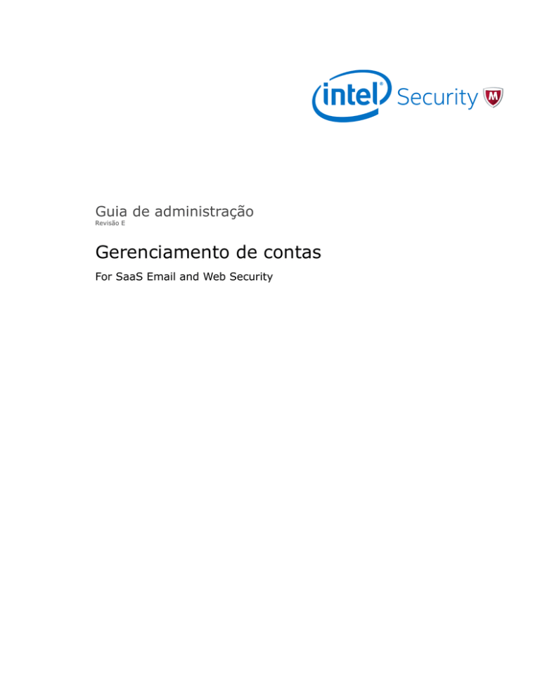 Guia de administração Revisão E Gerenciamento de contas For SaaS Email and Web Security COPYRIGHT Copyright © 2015 McAfee, Inc., 2821 Mission College Boulevard, Santa Clara, CA 95054, 1.888.847.8766, www.intelsecurity.com ATRIBUIÇÕES DE MARCAS COMERCIAIS Intel e o logotipo da Intel são marcas comerciais da Intel Corporation nos EUA e/ou em outros países. McAfee, o logotipo da McAfee, McAfee Active Protection, McAfee DeepSAFE, ePolicy Orchestrator, McAfee ePO, McAfee EMM, McAfee Evader, Foundscore, Foundstone, Global Threat Intelligence, McAfee LiveSafe, Policy Lab, McAfee QuickClean, Safe Eyes, McAfee SECURE, McAfee Shredder, SiteAdvisor, McAfee Stinger, McAfee TechMaster, McAfee Total Protection, TrustedSource e VirusScan são marcas comerciais ou marcas registradas da McAfee, Inc. ou de suas afiliadas nos EUA e em outros países. Outros nomes e marcas podem ser propriedade de terceiros. INFORMAÇÕES SOBRE LICENÇA Contrato de licença AVISO A TODOS OS USUÁRIOS: LEIA ATENTAMENTE O CONTRATO LEGAL CORRESPONDENTE À LICENÇA ADQUIRIDA POR VOCÊ. NELE ESTÃO DEFINIDOS OS TERMOS E AS CONDIÇÕES GERAIS PARA A UTILIZAÇÃO DO SOFTWARE LICENCIADO. CASO NÃO SAIBA O TIPO DE LICENÇA QUE VOCÊ ADQUIRIU, CONSULTE A DOCUMENTAÇÃO RELACIONADA À COMPRA E VENDA OU À CONCESSÃO DE LICENÇA, INCLUÍDA NO PACOTE DO SOFTWARE OU FORNECIDA SEPARADAMENTE (POR EXEMPLO, UM LIVRETO, UM ARQUIVO NO CD DO PRODUTO OU UM ARQUIVO DISPONÍVEL NO SITE DO QUAL O PACOTE DE SOFTWARE FOI OBTIDO POR DOWNLOAD). SE VOCÊ NÃO CONCORDAR COM TODOS OS TERMOS ESTABELECIDOS NO CONTRATO, NÃO INSTALE O SOFTWARE. SE FOR APLICÁVEL, VOCÊ PODERÁ DEVOLVER O PRODUTO À McAFEE OU AO LOCAL DE AQUISIÇÃO PARA OBTER REEMBOLSO TOTAL. 2 Gerenciamento de contas For SaaS Email and Web Security Guia de administração Conteúdo 1 O que é Gerenciamento de contas Diferença na administração para provedores de serviço . . . . . Visão geral do Control Console . . . . . . . . . . . . . . . A interface do Control Console . . . . . . . . . . . . Criação inicial de sua conta de cliente . . . . . . . . . . . . Garantia de que você pode receber e-mail do provedor de serviços Outros documentos que podem ser necessários . . . . . . . . Uso da Ajuda on-line . . . . . . . . . . . . . . . . . . . Pesquisar domínios e usuários . . . . . . . . . . . . . . . 2 5 . . . . . . . . . . . . . . . . . . . . . . . . . . . . . . . . . . . . . . . . . . . . . . . . . . . . . . . . . . . . . . . . . . . . . . . . . . . . . . . . . . . . . . . . . . . . . . . . . . . . . . . . . . . . . . . . Configuração do cliente 11 Configuração da sua conta de cliente . . . . . . . . . . . . . . . . . . . . . . . . . . Aspectos que devem ser considerados sobre fuso horário do usuário . . . . . . . . . . . . . Página Detalhes do cliente . . . . . . . . . . . . . . . . . . . . . . . . . . . . . . Alterando a interface do usuário para dar a ela a marca da sua empresa . . . . . . . . . . . Tipos de marca . . . . . . . . . . . . . . . . . . . . . . . . . . . . . . . Atributos de marca disponíveis . . . . . . . . . . . . . . . . . . . . . . . . . Marcas nos níveis de cliente e domínio . . . . . . . . . . . . . . . . . . . . . . Reestruturação de marca da interface do usuário no nível de cliente . . . . . . . . . . Página Marca . . . . . . . . . . . . . . . . . . . . . . . . . . . . . . . . Uso de listas de distribuição para mensagens de status e relatórios de desempenho . . . . . . . Criação de uma lista de distribuição . . . . . . . . . . . . . . . . . . . . . . . 3 Configuração do domínio Adição e gerenciamento de usuários 23 23 24 25 26 27 29 Tipos de funções e privilégios de usuário . . . . . . . . . . . . . . . . . . . . . . . . Acesso e privilégios de usuário básico . . . . . . . . . . . . . . . . . . . . . . Funções e privilégios do usuário administrativo . . . . . . . . . . . . . . . . . . . Acesso à página do administrador . . . . . . . . . . . . . . . . . . . . . . . . Usuários que estão protegidos da exclusão automática . . . . . . . . . . . . . . . Ativação do recurso de endereço de alias para todos os usuários . . . . . . . . . . . . . . . Benefícios dos endereços de alias . . . . . . . . . . . . . . . . . . . . . . . . Ativar suporte de endereço de alias . . . . . . . . . . . . . . . . . . . . . . . Definição de como os usuários podem entrar . . . . . . . . . . . . . . . . . . . . . . Configuração do método de autenticação por senhas . . . . . . . . . . . . . . . . Configurar método LDAP de autenticação de usuário . . . . . . . . . . . . . . . . Configuração do método IMAP de autenticação de usuário . . . . . . . . . . . . . . Configuração do método POP3 de autenticação de usuário . . . . . . . . . . . . . . Gerenciamento de contas For SaaS Email and Web Security 11 11 12 13 13 15 16 17 18 20 21 23 O que é um domínio . . . . . . . . . . . . . . . . . . . . . . . . . . . . . . . . Revisão da lista de domínios . . . . . . . . . . . . . . . . . . . . . . . . . . . . . Visualizar os detalhes de um domínio . . . . . . . . . . . . . . . . . . . . . . . . . Atribuição de um alias de domínio . . . . . . . . . . . . . . . . . . . . . . . . . . . Administrar o idioma padrão do domínio . . . . . . . . . . . . . . . . . . . . . . . . Reestruturação da interface de usuário de um domínio . . . . . . . . . . . . . . . . . . . 4 5 5 6 7 7 7 8 9 29 29 31 32 35 35 35 36 37 37 38 40 41 Guia de administração 3 Conteúdo Configuração do fuso horário padrão . . . . . . . . . . . . . . . . . . . . . . . . . . Aspectos que devem ser considerados sobre fuso horário do usuário . . . . . . . . . . Definir o fuso horário padrão para usuários . . . . . . . . . . . . . . . . . . . . Como adicionar usuários ao Control Console . . . . . . . . . . . . . . . . . . . . . . . Criação automática de contas de usuário (somente para Email Protection) . . . . . . . . Revisão da lista 
