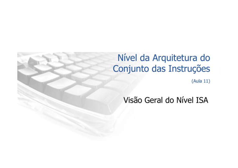 Nível da Arquitetura do Conjunto das Instruções (Aula 11) Visão Geral do Nível ISA http://www.inf.ufes.br/~rgomes/sp1.htm Antes de deixarmos o hardware 8 2 (1) Antes de deixarmos o hardware 3 (2) http://www.inf.ufes.br/~rgomes/sp1.htm ISA (Instruction Set Architecture) Arquitetura do Conjunto de Instruções (Instruction Set Architecture) Nível Convencional de Máquina ISA 4 http://www.inf.ufes.br/~rgomes/sp1.htm ISA Definição A parte do computador visível ao programador ou ao implementador de compiladores Interface entre o Hardware e o Software 5 http://www.inf.ufes.br/~rgomes/sp1.htm ISA (Instruction Set Architecture) (1) Metodologia empregada nos sistemas computacionais: Programas em diversas linguagens de alto nível são traduzidos para uma mesma linguagem intermediária (nível ISA) para serem então executados em um hardware construído para executar diretamente instruções do nível ISA. Sistemas de Programação I – 2007/2 6 Profa http://www.inf.ufes.br/~rgomes/sp1.htm ISA (Instruction Set Architecture) O nível ISA define o aspecto da máquina para um programador da linguagem de máquina. (2) Quantas pessoas programam diretamente em linguagem de máquina atualmente? As instruções do nível ISA são aquelas para as quais o compilador deve gerar código Para tal, o projetista de compiladores deve conhecer um conjunto de informações que definem o nível ISA. Grande preocupação com compatibilidade Novas máquinas devem ser compatíveis com as anteriores Suportar os mesmos sistemas operacionais e programas de aplicação Em algumas arquiteturas, o nível ISA é especificado por meio de um documento formal (com seções normativas e informativas) 7 Profa Roberta L.G. - LPRM/DI/UFES http://www.inf.ufes.br/~rgomes/sp1.htm Exemplo: ISA do MIPS (R3000) Microprocessor without Interlocked Pipeline Stages Não confundir com Million Instructions per Second Arquitetura RISC Nos anos 90, 1 em cada 3 microprocessadores de arquitetura RISC eram MIPS 8 http://www.inf.ufes.br/~rgomes/sp1.htm Exemplo: ISA do MIPS (R3000): Descendo o Nível Sistemas de Programação I – 2007/2 9 Profa Roberta L.G. - LPRM/DI/UFES http://www.inf.ufes.br/~rgomes/sp1.htm Modos de Execução Na maioria das máquinas há, no mínimo, dois modos. Pode-se dizer que são níveis de visibilidade do ISA. Modo Kernel (Modo Supervisor) Usado para executar o sistema operacional e permite que qualquer instrução da máquina seja executada nele. Modo Usuário Usado para executar programas de aplicação e não permite que certas instruções mais sensíveis executem nele. Instruções de manipulação de cache não podem ser executadas no modo usuário. 10 http://www.inf.ufes.br/~rgomes/sp1.htm Componentes o nível ISA Modelo de Memória da Máquina; Conjunto de registradores Quais instruções são disponíveis e o que cada uma executa; Tipos de Dados utilizados; etc. 11 http://www.inf.ufes.br/~rgomes/sp1.htm Modelos de Memória Todos os computadores dividem suas memórias em um conjunto de células consecutivas. (1) Em geral, as células são definidas em 8 bits (1 byte). Os bytes são agrupados em palavras de 4 bytes (32 bits) ou de 8 bytes (64 bits). Muitas arquiteturas exigem que as palavras estejam sempre alinhadas em suas fronteiras naturais. Por exemplo, uma palavra de 4 bytes só pode começar nos endereços 0, 4, 8, ..., e não em endereços como 1 ou 2 (não múltiplos de 4). Em geral, as memórias operam com mais eficiência quando as informações estão alinhadas. 12 http://www.inf.ufes.br/~rgomes/sp1.htm Modelos de Memória (2) “Em geral, as memórias operam com mais eficiência quando as informações estão alinhadas”... Por quê? O acesso a memórias alinhadas são mais eficientes. A leitura de um endereço arbitrário requer um hardware mais 13sofisticado e é mais caro a http://www.inf.ufes.br/~rgomes/sp1.htm Modelos de Memória A maioria das máquinas tem um único espaço de endereçamento linear no nível ISA (3) Do endereço 0 até um valor máximo (ex: 232 bytes) Apesar disso, algumas máquinas implementam o conceito de espaço de endereçamento separados para instruções e dados. A busca de uma instrução no endereço 8 acessa um espaço de endereços diferente daquele que é acessado quando ocorre a busca de um dado no endereço 8. Com isso é possível endereçar 232 bytes de código mais 232 bytes de dados Elimina uma fonte de bugs, quando uma escrita em um dado fica impedida de alterar acidentalmente uma instrução de programa. 14 http://www.inf.ufes.br/~rgomes/sp1.htm Componentes o nível ISA Modelo de Memória da Máquina; Conjunto de registradores Quais instruções são disponíveis e o que cada uma executa; Tipos de Dados utilizados; etc. 15 http://www.inf.ufes.br/~rgomes/sp1.htm Registradores Todos os processadores têm um conjunto de registradores visíveis no nível ISA. TOS e MAR são visíveis na microarquitetura, mas NÃO no ISA. PC e SP são visíveis em ambos os níveis. (1) Os registradores visíveis no ISA são sempre visíveis microarquitetura, pois é lá que eles são implementados. na Os registradores existem para controlar a execução do programa, para guardar resultados temporários e para vários outros propósitos. 16 http://www.inf.ufes.br/~rgomes/sp1.htm Registradores Registradores de Propósito Específico Exemplo: PC e SP. O que eles fazem? Cumprem funções específicas Alguns só são usados pelo processador (2) Isto é, o programador não consegue diretamente alterar seus valores Registradores de Propósito Geral Armazenam variáveis locais e resultados intermediários de cálculos. Devem permitir que os dados que estejam sendo usados com mais freqüência sejam acessados rapidamente (sem acessos à memória). Em algumas máquinas, os registradores de propósito geral são intercambiáveis e equivalentes A escolha do registrador R1 ou do R25 para executar uma tarefa é irrelevante. 17 http://www.inf.ufes.br/~rgomes/sp1.htm Um exemplo: Registrad