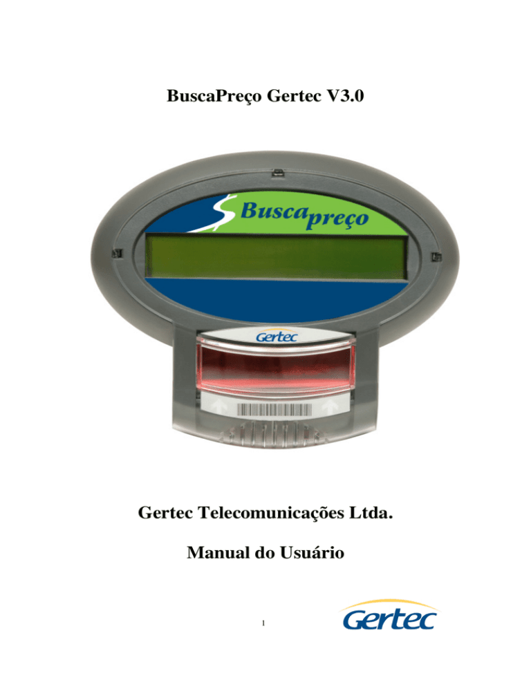 BuscaPreço Gertec V3.0 Gertec Telecomunicações Ltda. Manual do Usuário 1 DESCRIÇÃO ............................................................................................................................... 3 RECONHECENDO O TERMINAL ........................................................................................... 4 INSTALAÇÃO DO TERMINAL................................................................................................ 5 CONFIGURAÇÃO DO TERMINAL ......................................................................................... 5 CONFIGURANDO PELO TECLADO..................................................................................................... 5 CONFIGURANDO REMOTAMENTE .................................................................................................... 7 REINICIANDO CONFIGURAÇÕES......................................................................................... 7 APLICATIVO VERIFICADOR DE PREÇOS DO TERMINAL BUSCA PREÇO.................. 8 PROTOCOLO DE TERMINAL DE CONSULTA TC501 GERTEC V2.3............................... 8 ESPECIFICAÇÕES .................................................................................................................. 12 2 Descrição O Terminal de Consultas Busca Preço é um moderno verificador de preços. Ele foi desenvolvido com o objetivo de oferecer um excelente desempenho a um custo baixo. Ele oferece grande facilidade de instalação sem exigir do instalador muitos conhecimentos técnicos. Possui baixo consumo de energia e grande eficiência. Utiliza protocolo de comunicação aberto, baseado no protocolo TCP/IP, permite fácil adaptação em qualquer sistema operacional que dê suporte à rede. O Busca Preço lê o código de barras do produto através de seu scanner e envia essa informação através de uma das interfaces de rede usando o protocolo TCP/IP, a um programa servidor. O servidor consulta o banco de dados e retorna ao terminal, o nome e o preço do produto consultado ou a informação de produto não encontrado. O Busca Preço apresenta essas informações em seu display. O Protocolo do Terminal de Consultas Gertec da camada aplicação é aberto e é fácil de ser usado por desenvolvedores de programas. Desenvolvido pela Gertec Telecomunicações, com tecnologia nacional, o terminal de consultas Busca Preço permite fácil atualização de seu firmware, além de prover um "kit de desenvolvimento de software" (SDK) para aplicações personalizadas. Enfim, o terminal de consultas Busca Preço da Gertec foi feito para ser simples, eficiente e competitivo, trazendo facilidades para usuários, desenvolvedores e instaladores. 3 Reconhecendo o terminal A seguir, serão apresentadas fotos do terminal. Na vista frontal temos o LCD de 20x2 caracteres e o scanner. Na lateral esquerda, temos o conector de teclado. Na vista inferior, encontra-se o conector de rede e na vista traseira encontram-se os furos de fixação, o conector da fonte. 4 Instalação do terminal O terminal deve ser instalado em uma parede ou plataforma vertical através de seus furos de fixação, localizados no gabinete traseiro. Próximo ao local de instalação deve haver uma tomada AC. Se a rede sem fio estiver desabilitada, será necessário ter também e um ponto de rede Ethernet. 1) Conecte o cabo de rede com conector RJ45 (se a rede sem fio estiver desabilitada). 2) Ligue a fonte na tomada AC e conecte o plug da fonte no terminal. 3) Instale no local usando os furos de fixação. 4) O scanner deverá ligar e emitir um bipe. O display irá exibir um texto. Configuração do terminal O terminal de consultas Busca Preço V3.0 pode ser configurado de duas formas, pelo teclado utilizando o display do próprio equipamento, ou remotamente, utilizando um navegador de internet. Configurando pelo teclado Ao ser ligado, o terminal pode ser configurado em seu local, conectando um teclado de computador no conector mini-din na sua lateral esquerda. Uma vez configurado, de forma que o terminal funcione com as características da rede onde estiver instalado, ele irá se comunicar pela rede e poderá ser re-configurado remotamente, veja o procedimento a seguir: 1) Conecte um teclado de computador no conector mini-din na lateral direita do Busca Preço. 2) Ligue o terminal conectando o cabo de força na tomada AC. Ao ser ligado, o terminal de consultas Busca Preço apresenta pontos no display, deslocando da esquerda para direita, chamados de barra de progresso. Enquanto essa barra de progresso se desloca na tela, é possível configurar o terminal antes dele rodar o aplicativo principal, apertando a tecla “P”. Ao pressionar a tecla "P", deverá aparecer no display a seguinte tela: 1 Rede 2 Idioma A configuração é formada pelos seguintes tópicos: Rede Geral DHCP Endereço IP Máscara de rede Gateway Servidor DNS Ok Cancelar Rede sem fio Habilitar WiFi Modo SSID Canal Utilizar WEP Chave WEP Ok Cancelar Nome do terminal Endereço servidor Ok 5 Cancelar Idioma Português/Inglês/Espanhol Mensagens Mensagem 1a Mensagem 1b Mensagem 2a Mensagem 2b Tempo de exibição Ok Cancelar Config. de fábrica Salvar e sair Sair Na frente de cada item do menu de configuração tem um número. Para acessar o menu, basta digitar este número no teclado. Veremos cada item de configuração: Dica: Em cada menu, a tecla ENTER é um atalho para a opção OK e a tecla ESC é um atalho para a opção CANCELAR. 1.1.1 DHCP: Utilizando a tecla “espaço” você habilitar/desabilitar o terminal para obter um endereço dinâmico por DHCP. 1.1.2 Endereço IP: Esse é o endereço do terminal de consulta, caso a opção DHCP esteja desabilitada. 1.1.3 Máscara da Rede: Permite alterar a máscara de rede (ou sub-rede). 1.1.4 Gateway: Endereço IP do dispositivo de rede (roteador) responsável por conectar a uma rede externa (por exemplo à internet). Caso sua rede não tenha um roteador, deixar este campo em branco. 1.1.5 Servidor
