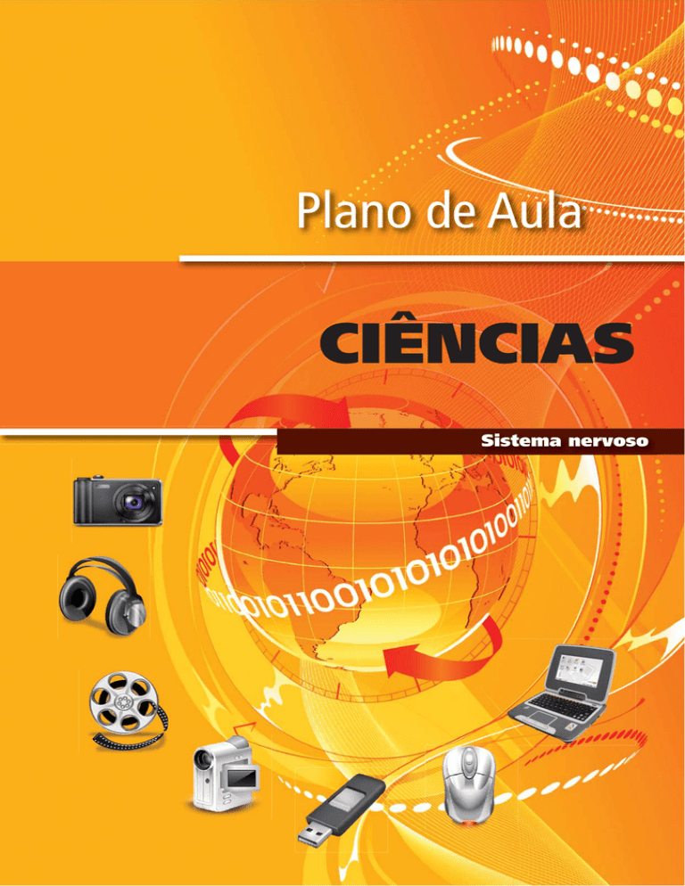Plano de Aula CIÊNCIAS Sistema nervoso Sistema nervoso. 09 p.; il. (Série Plano de Aula; Ciências) ISBN: 1. Ensino Fundamental – Ciências 2. Ser humano e saúde 3. Educação Presencial I. Título II. Série CDU: 373.3:5 Plano de Aula SISTEMA NERVOSO Nível de Ensino Ensino Fundamental / Anos Iniciais Ano / Semestre 5º ano Componente Curricular Ciências OBJETIVOS Tema Ser humano e saúde Duração da Aula 2 aulas (50 min cada ) Modalidade de Ensino Educação Presencial GLOSSÁRIO Ao final das aulas, o aluno será capaz de: • DCN4 – F1 – CIE - Registrar seqüências de eventos observadas em experiências ou outras aƟvidades, idenƟfi cando etapas e transformações • DCN12 – F1 – CIE - IdenƟficar e localizar órgãos do corpo e suas funções, estabelecendo relações entre sistema circulatório, sistema digestório, sistema respiratório e sistema excretor • DCNH6 – F1 – CIE - Estabelecer relações entre o sistema nervoso, a recepção de esơmulos pelos órgãos dos senƟdos, os impulsos nervosos e as reações. • D3.7 – F1 – TEC - Levantar suposições sobre as causas e efeitos de fenômenos e acontecimentos. • D3.11 – F1 – TEC - JusƟficar acontecimentos, resultados de experiências, opiniões, interpretações, decisões etc. PRÉ-REQUISITOS DOS ALUNOS • O aluno precisa ter noções de corpo humano.; • Noções uƟlização do kword e kPresenter. RECURSOS/MATERIAIS DE APOIO - Computador com acesso à Internet, - Laptop educacional; - kword e kPresenter Sinapses - É uma região de comunicação entre os neurônios ou entre neurônios Meninges - São três delicadas membranas que revestem e protegem o Sistema nervoso central, medula espinal, tronco encefálico e o encéfalo. Cortéx - corresponde à camada externa do cérebro dos vertebrados. SISTEMA NERVOSO 02 QUESTÕES PROBLEMATIZADORAS O que tem no cérebro que faz a gente pensar? Como conseguimos lembrar tantas coisas? LEIS, PRINCÍPIOS, TEORIAS, TEOREMAS, AXIOMAS, FUNDAMENTOS, REGRAS... SISTEMA NERVOSO O sistema nervoso é responsável pela maioria das funções de controle em um organismo, coordenando e regulando as aƟvidades corporais. O neurônio é a unidade funcional deste sistema. Neurônio O neurônio é a unidade funcional do sistema nervoso. Os neurônios comunicam-se através de sinapses; por eles propagam-se os impulsos nervosos. Anatomicamente o neurônio é formado por: dendrito, corpo celular e axônio. A transmissão ocorre apenas no senƟdo do dendrito ao axônio. SISTEMA NERVOSO 03 LEIS, PRINCÍPIOS, TEORIAS, TEOREMAS, AXIOMAS, FUNDAMENTOS, REGRAS... Principais componentes do Sistema Nervoso Central: Medula espinhal A medula espinhal é o centro dos arcos reflexos. Encontra-se organizada em segmentos (região cervical, lombar, sacral, caudal, raiz dorsal e ventral). É uma estrutura subordinada ao cérebro, porem pode agir independente dele. Cérebro O cérebro está relacionado com a maioria das funções do organismo como a recepção de informações visuais nos vertebrados, movimentos do corpo que requerem coordenação de grande número de partes do corpo. O cérebro encontra-se protegido pelas meninges: pia-máter, dura-máter e aracnóide. O encéfalo dos mamíferos é dividido em: telencéfalo (cérebro), diencéfalo (tálamo e hipotálamo), mesencéfalo (teto), metencéfalo (ponte e cerebelo) e mielencéfalo (bulbo). Bulbo ou medula oblonga O bulbo tem a função relacionada com a respiração e é considerado um centro vital. Também está relacionado com os reflexos cardiovasculares e transmissão de informações sensoriais e motoras. Cerebelo O cerebelo é responsável pelo controle motor. A organização básica do cerebelo é praƟcamente a mesma em todos os vertebrados, diferindo apenas no número de células e grau de enrugamento. Pesquisas recentes sugerem que a principal função do cerebelo seja a coordenação sensorial e não só o controle motor. Ponte A função da ponte é transmiƟr as informações da medula e do bulbo até o córtex cerebral. Faz conexão com centros hierarquicamente superiores. O córtex sensorial coordena os esơmulos vindos de várias partes do sistema nervoso. O córtex motor é responsável pelas ações voluntárias e o córtex de associação está relacionado com o armazenamento da memória. Principais divisões do Sistema Nervoso Periférico O SNP pode ser divido em voluntário e autônomo. Sistema Nervoso Voluntário Está relacionado com os movimentos voluntários. Os neurônios levam a informação do SNC aos músculos esqueléƟcos, inervando-os diretamente. Pode haver movimentos involuntários. Sistema Nervoso Autônomo Está relacionado com os movimentos involuntários dos músculos como não-estriado e estriado cardíaco, sistema endócrino e respiratório. É divido em simpáƟco e parassimpáƟco. Eles têm função antagônica sobre o outro. São controlados pelo SNC, principalmente pelo hipotálamo e atuam por meio da adrenalina e da aceƟlcolina. O mediador químico do SNA simpáƟco é a aceƟlcolina e a adrenalina, enquanto do parassimpáƟco é apenas a aceƟlcolina. 04 SISTEMA NERVOSO LEIS, PRINCÍPIOS, TEORIAS, TEOREMAS, AXIOMAS, FUNDAMENTOS, REGRAS... Arco reflexo Os atos reflexos são reações involuntárias que envolvem impulsos nervosos, percorrendo um caminho chamado arco reflexo. Um exemplo muito conhecido de arco reflexo é o reflexo patelar. O tendão do joelho é o órgão receptor do esơmulo. Quando recebe o esơmulo (ex. uma pancada) os dendritos dos neurônios ficam excitados. O impulso é transmiƟdo aos neurônios associaƟvos por meio de sinapses, que por sua vez transmitem o impulso aos neurônios motores. Os neurônios associaƟvos levam a informação ao encéfalo e os neurônios motores excitam os músculos da coxa, fazendo com que a perna se movimente. Disponível em: http://www.infoescola.com/biologia/sistema-nervoso/ Acessado em:24.01.2012 PARA REFLETIR COM OS ALUNOS Dispon