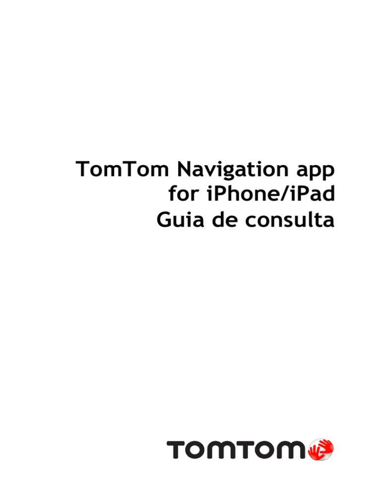 TomTom Navigation app for iPhone/iPad Guia de consulta Conteúdos Inicialização 6 Iniciar o TomTom Navigation app for iPhone/iPad .......................................................... 6 Atualização do seu TomTom Navigation app for iPhone/iPad ............................................. 6 Compartilhando informações com a TomTom ................................................................ 6 Recepção GPS ...................................................................................................... 7 Serv. Localização .................................................................................................. 7 Como conectar um kit de automóvel........................................................................... 7 Planejamento de um percurso 9 Planejamento de um percurso................................................................................... 9 Resumo do percurso ............................................................................................. 10 Compartilhamento do seu percurso .......................................................................... 10 Outras opções de destino....................................................................................... 10 Página inicial ................................................................................................. 11 Favorito ........................................................................................................ 11 Endereço ...................................................................................................... 11 Destino recente .............................................................................................. 11 Locais .......................................................................................................... 11 Pessoas......................................................................................................... 11 Eventos ........................................................................................................ 12 Ponto de Interesse ........................................................................................... 12 Cópia de endereço ........................................................................................... 13 Foto ............................................................................................................ 13 Código postal ................................................................................................. 13 Ponto no mapa ............................................................................................... 13 Coordenadas .................................................................................................. 13 Encontrar um percurso alternativo ........................................................................... 13 Planejamento antecipado de um percurso .................................................................. 14 Adicionar um percurso ao seu calendário ................................................................... 14 Recurso área de transferência................................................................................. 15 Vista da direção 16 Vista da Direção .................................................................................................. 16 Navegar na vista da direção ................................................................................... 17 Ajuste do volume ................................................................................................ 18 Barra de ferramentas de acesso rápido ...................................................................... 18 Configurações de mapa ......................................................................................... 18 Orientação de pista avançada 19 Sobre Orientação de pista avançada ......................................................................... 19 Opções de percurso 20 Opções de percurso.............................................................................................. 20 Minimizar atrasos ................................................................................................ 20 Localizar alternativa ............................................................................................ 20 Viajar por... ...................................................................................................... 21 Demonstração do percurso ..................................................................................... 22 Limpar percurso .................................................................................................. 22 2 Instruções ......................................................................................................... 22 Mapa do percurso ................................................................................................ 23 Adicionar ao meu calendário .................................................................................. 23 Configurações 24 Alterar Configurações ........................................................................................... 24 Definir local da residência ..................................................................................... 24 Gerenciar favoritos .............................................................................................. 24 Destinos recentes ................................................................................................ 24 Voz ................................................................................................................. 24 Alertas ............................................................................................................. 25 Áudio ............................................................................................................... 26 Mapa .............................................................................................
