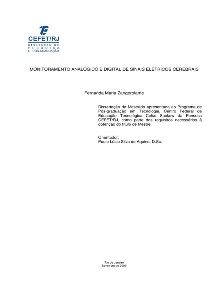 MONITORAMENTO ANALÓGICO E DIGITAL DE SINAIS ELÉTRICOS CEREBRAIS