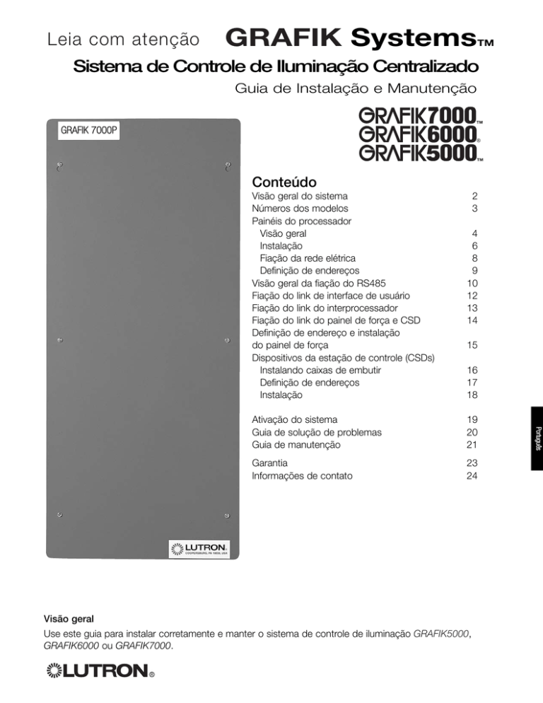 Use este guia para instalar corretamente e manter o sistema de controle de iluminação GRAFIK5000,
