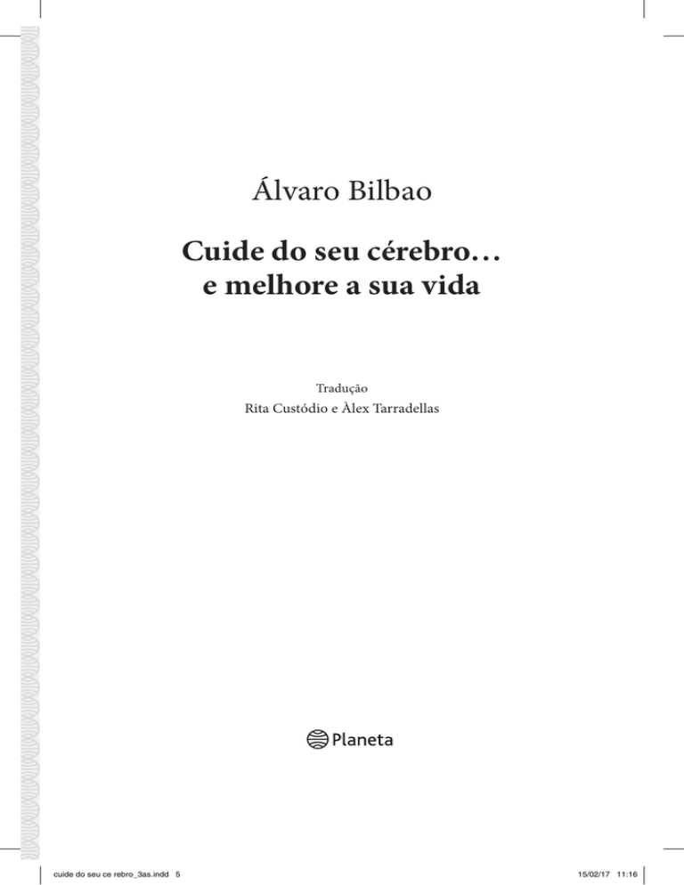 Álvaro Bilbao Cuide do seu cérebro… e melhore a sua vida Tradução Rita Custódio e Àlex Tarradellas cuide do seu ce rebro_3as.indd 5 15/02/17 11:16 Para o Diego, a Leire e a Lucía. Os melhores filhos com que um pai pode sonhar. cuide do seu ce rebro_3as.indd 7 15/02/17 11:16 cuide do seu ce rebro_3as.indd 8 15/02/17 11:16 «Os homens e as mulheres perdem a saúde para juntar dinheiro e depois perdem o dinheiro para recuperar a saúde; e por pensarem ansio‑ samente no futuro esquecem o presente, de tal forma que acabam por não viver nem o pre‑ sente nem o futuro, vivem como se nunca fos‑ sem morrer, e morrem como se nunca tivessem vivido.» Gandhi cuide do seu ce rebro_3as.indd 9 15/02/17 11:16 cuide do seu ce rebro_3as.indd 10 15/02/17 11:16 Antes de mais quero agradecer aos meus pais, José María e Begoña, por me terem enchido o cérebro de responsabilidade e de oportunidades, mas sobretudo de carinho. Aos meus avós, Carmen, José Luis, Rosario e Rafael, por me terem dado amor e uma pers‑ pectiva ampla do cuidado do cérebro. À minha mulher, porque é simplesmente maravilhosa e porque é graças à sua generosidade e apoio que este e tantos outros projectos podem seguir em frente. A Jordi Nadal e a toda a equipa da Plataforma Editorial por me pro‑ porcionarem a sua plataforma e me darem todo o seu apoio e pro‑ fissionalismo. Em último lugar, e muito especialmente, a todos os pacientes que me deixaram avaliar o seu cérebro e ajudá­‑los a opti‑ mizar o seu funcionamento. Ensinaram­‑me e deram­‑me muito mais do que eu alguma vez lhes poderei retribuir. cuide do seu ce rebro_3as.indd 11 15/02/17 11:16 cuide do seu ce rebro_3as.indd 12 15/02/17 11:16 Índice Introdução . . . . . . . . . . . . . . . . . . . . . . . . . . . . . . . . . . . . . . . . . . . . 1. Os perigos para o seu cérebro . . . . . . . . . . . . . . . . . . . . . . . . . 2. Sabe cuidar do seu cérebro? . . . . . . . . . . . . . . . . . . . . . . . . . . . 3. Descubra o seu cérebro . . . . . . . . . . . . . . . . . . . . . . . . . . . . . . . 4. Uma viagem pelo mundo da saúde cerebral . . . . . . . . . . . . . . 5. As chaves da saúde cerebral . . . . . . . . . . . . . . . . . . . . . . . . . . . 6. Aumente a sua reserva cognitiva . . . . . . . . . . . . . . . . . . . . . . . Reserva cognitiva e protecção intelectual . . . . . . . . . . . . . . . Aprenda coisas novas . . . . . . . . . . . . . . . . . . . . . . . . . . . . . . . . Desenvolva a linguagem . . . . . . . . . . . . . . . . . . . . . . . . . . . . . Exercite a memória . . . . . . . . . . . . . . . . . . . . . . . . . . . . . . . . . Desperte a sua curiosidade . . . . . . . . . . . . . . . . . . . . . . . . . . . Outras vantagens da reserva cognitiva . . . . . . . . . . . . . . . . . . 7. Exercite o seu coração . . . . . . . . . . . . . . . . . . . . . . . . . . . . . . . . Caminhe pelo seu cérebro . . . . . . . . . . . . . . . . . . . . . . . . . . . . Actividade física para fortalecer a sua mente . . . . . . . . . . . . Estimule o seu humor com o exercício físico . . . . . . . . . . . . 8. Alimente os seus neurónios . . . . . . . . . . . . . . . . . . . . . . . . . . . Incorporar gorduras saudáveis . . . . . . . . . . . . . . . . . . . . . . . . Evitar a oxidação do cérebro . . . . . . . . . . . . . . . . . . . . . . . . . . 15 19 27 33 43 53 57 59 63 64 65 67 70 75 76 79 81 89 90 93 13 cuide do seu ce rebro_3as.indd 13 15/02/17 11:16 Álvaro Bilbao Hidratar o cérebro e combater a inflamação . . . . . . . . . . . . . Escolher fontes de energia inteligentes . . . . . . . . . . . . . . . . . . Incorporar suplementos «neurossaudáveis» . . . . . . . . . . . . . Comer em família . . . . . . . . . . . . . . . . . . . . . . . . . . . . . . . . . . Suplementos vitamínicos . . . . . . . . . . . . . . . . . . . . . . . . . . . . . Restrição calórica . . . . . . . . . . . . . . . . . . . . . . . . . . . . . . . . . . . Vinho tinto . . . . . . . . . . . . . . . . . . . . . . . . . . . . . . . . . . . . . . . . Chocolate e café . . . . . . . . . . . . . . . . . . . . . . . . . . . . . . . . . . . . Triptófano . . . . . . . . . . . . . . . . . . . . . . . . . . . . . . . . . . . . . . . . . Chá verde . . . . . . . . . . . . . . . . . . . . . . . . . . . . . . . . . . . . . . . . . Exemplo de ementa saudável para o seu cérebro . . . . . . . . . 9. Sonhe com um cérebro mais saudável . . . . . . . . . . . . . . . . . . Sono e descanso . . . . . . . . . . . . . . . . . . . . . . . . . . . . . . . . . . . . Sono, memória e reserva cognitiva . . . . . . . . . . . . . . . . . . . . . Sono e emoções . . . . . . . . . . . . . . . . . . . . . . . . . . . . . . . . . . . . 10. Afaste o stress da sua vida . . . . . . . . . . . . . . . . . . . . . . . . . . . . 11. Cultive emoções positivas . . . . . . . . . . . . . . . . . . . . . . . . . . . . . Desfrutar de emoções agradáveis . . . . . . . . . . . . . . . . . . . . . . Dar sentido à vida . . . . . . . . . . . . . . . . . . . . . . . . . . . . . . . . . . Experimentar o fluir da vida . . . . . . . . . . . . . . . . . . . . . . . . . . 12. Vida social . . . . . . . . . . . . . . . . . . . . . . . . . . . . . . . . . . . . . . . . . Socializar como antídoto da deterioração intelectual . . . . . . Socializar para proteger o seu ânimo . . . . . . . . . . . . . . . . . . . 13. Desenvolver um estilo de vida «neurossaudável» . . . . . . . . . A sua motivação para melhorar a saúde cerebral . . . . . . . . . 14. Em jeito de epílogo: educar para a saúde do cérebro . . . . . . Leituras recomendadas . . . . . . . . . . . . . . . . . . . . . . . . . . . . . . . . . . 95 96 98 98 99 99 100 101 101 102 104 107 109 110 114 121 133 134 135 137 145 147 149 157 158 167 173 14 cuide do seu ce rebro_3as.indd 14 15/02/17 11:16 Introdução «A principal função do corpo é transportar o cérebro.» Thomas Edison O seu cérebro é o órgão mais valioso que tem. Nel