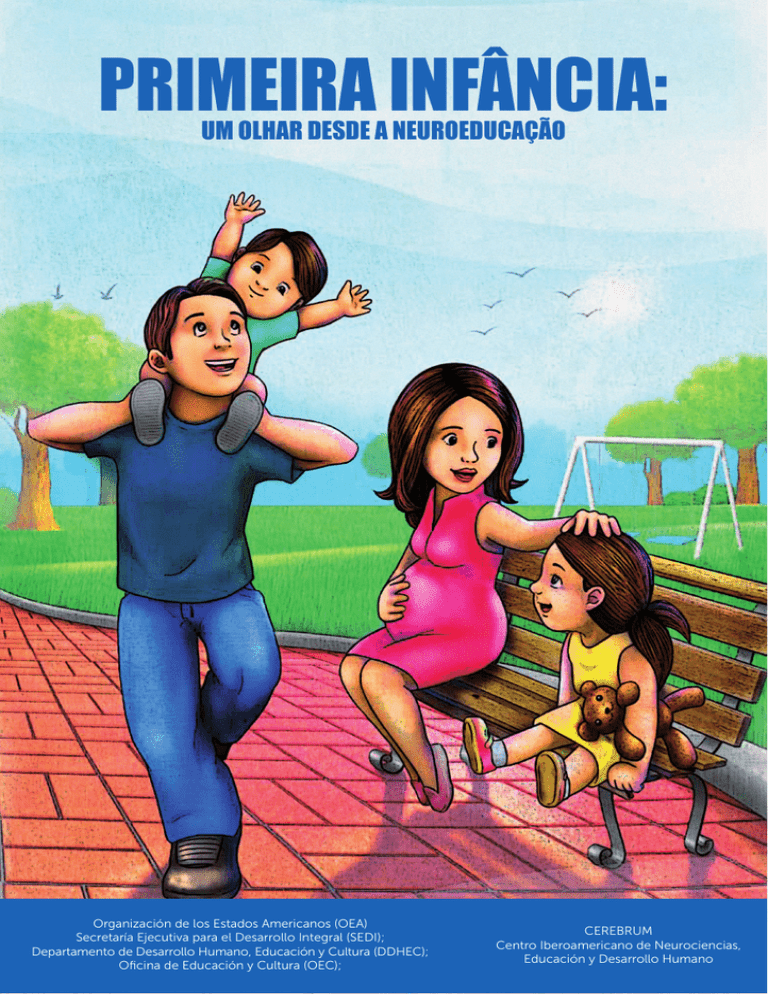 PRIMEIRA INFÂNCIA: UM OLHAR DESDE A NEUROEDUCAÇÃO Organización de los Estados Americanos (OEA) Secretaría Ejecutiva para el Desarrollo Integral (SEDI); Departamento de Desarrollo Humano, Educación y Cultura (DDHEC); Oficina de Educación y Cultura (OEC); CEREBRUM Centro Iberoamericano de Neurociencias, Educación y Desarrollo Humano PRIMEIRA INFÂNCIA: UM OLHAR DESDE A NEUROEDUCAÇÃO (Materiais para uso nos meios de comunicação, advocacia e sensibilização) 17th St. & Constitution Ave., N.W. Washington, D.C. 20006 Estados Unidos de América T. (202) 458-3000 http://www.oas.org Esta publicação foi preparada pela Oficina de Educação e Cultura da Organização dos Estados Americanos (OEA/SEDI/DDHEC/OEC). A responsável pelo projeto e autoria do texto foi da Mg. Anna Lucia Campos. Assessoria pedagógica: ASEDH – Associação Educativa para o Desenvolvimento Humano: Mg. Arlette Fernández, Mg. Daphne Marsano e Lic. David Arango. Assessoria neurocientífica a cargo da SONEP – Sociedade para a Neurociência do Peru: Dr. Luis Aguilar e Dr. Daniel Paredes. Vários fragmentos do documento foram extraídos do livro Neuroeducação: como educar para que o cérebro aprenda, de Anna Lucia Campos, com a autorização respectiva da autora. Edição do projeto: Cerebrum – Centro Iberoamericano de Neurociências, Educação e Desenvolvimento Humano. Avenida Caminos del Inca 1325. Lima 33. Perú. Tel. (0051-1) 2751348. Coordenação geral do projeto, revisão da edição e publicação do livro a cargo da Dra. Gaby Fujimoto, Especialista Señor de Educação da OEA. Correção de estilo: Eleonor Campos Beuttemmüller Desenho gráfico: Gilberto Cárdenas Diagramação: Gilberto Cárdenas Ilustrações: Esdrújula Tradução ao Português: Eleonor Campos Beuttemmüller © Derechos reservados OEA/OEC, 2010 Proibida a reprodução parcial ou total desta obra sem permissão. ISBN Índice 7 Prefácio Capítulo I A Neuroeducação: uma nova aliada dos programas de atenção e educação da primeira infância. 11 Capítulo II Entendendo as crianças desde o começo: a etapa pré-natal e a construção do cérebro. 19 Capítulo III O nascimento e os primeiros meses: momentos decisivos para o cérebro. 35 Capítulo IV Um breve olhar sobre a primeira infância. 45 Capítulo V Fatores de influência no desenvolvimento infantil. 59 Capítulo VI. Mensagens à comunidade para um compromisso com a primeira infância. 67 Referências. 71 OEA Organização dos Estados Americanos 5 Prefácio Os primeiros anos de vida são essenciais para o desenvolvimento vital de uma pessoa, já que nesta etapa a genética e as experiências com o entorno perfilam a arquitetura do cérebro e desenham o comportamento humano. Indiscutivelmente, a primeira infância é uma etapa crucial no desenvolvimento vital do ser humano. Nela se consolida toda a base para as aprendizagens posteriores, já que o crescimento e desenvolvimento cerebral, resultantes da sinergia entre um código genético e as experiências de interação com o ambiente, permitirão uma incomparável aprendizagem e o desenvolvimento de habilidades sociais, emocionais, cognitivas, sensoperceptivas e motoras, que serão a base de toda uma vida. Os estudos realizados em Neurociências (ciências que estudam o sistema nervoso e o cérebro) e, em OEA Organização dos Estados Americanos 7 Prefacio especial, as investigações relacionadas ao processo de desenvolvimento cerebral, estão mudando o diálogo acerca da atenção e educação da primeira infância, já que pais, educadores, órgãos governamentais e não governamentais começam a entender que a educação, principalmente nesta etapa da vida, desempenha um papel quase de protagonista na estruturação e funcionalidade do sistema nervoso e do cérebro. Apesar de todos os argumentos apresentados, sabemos que não é suficiente o grau de sensibilização e informação sobre a atenção e educação na primeira infância. Os primeiros anos de vida são essenciais para o desenvolvimento do ser humano já que as primeiras experiências perfilam a arquitetura do cérebro e desenham o futuro comportamento. Nessa etapa, o cérebro experimenta mudanças fenomenais: cresce, desenvolve-se e passa por períodos sensíveis para algumas aprendizagens, e, por esta razão, necessita de um entorno com experiências significativas, estímulos multissensoriais, recursos físicos adequados; mas, principalmente, necessita de um ambiente intensificado pelo cuidado, pela responsabilidade e pelo afeto de um adulto comprometido. Nesta publicação que pretende servir de documento de referência, encontrar-se-á a fundamentação científica que explica a necessidade do desenvolvimento de ações de cuidado, educação e desenvolvimento da primeira infância. É uma ferramenta de formação e reflexão que está dirigida aos pais, educadores, comunicadores, profissionais da saúde, entidades públicas, empresas 8 Primeira infância: um olhar desde a Neuroeducação privadas e a todas as pessoas que, vinculadas às crianças, desejam reforçar seus conhecimentos sobre essa etapa do desenvolvimento humano e desejam ter una base neurocientífica para as práticas educativas familiares, institucionais e comunitárias dirigidas à primeira infância. Esta publicação, ademais, se encontra preparada para ser usada nos meios de comunicação. OEA Organização dos Estados Americanos 9 Capítulo I A neuroeducação: uma nova aliada para os programas de atenção e educação da primeira infância OEA Organização dos Estados Americanos 11 CAPÍTULO I A Neuroeducação: uma nova aliada dos programas de atenção e educação da primeira infância. Para alcançar o desenvolvimento de nossas sociedades, faz-se necessário “estender e melhorar a proteção e educação integrais da primeira infância, especialmente para as crianças mais vulneráveis e desfavorecidas”. Nos últimos anos, várias instituições e países do âmbito mu