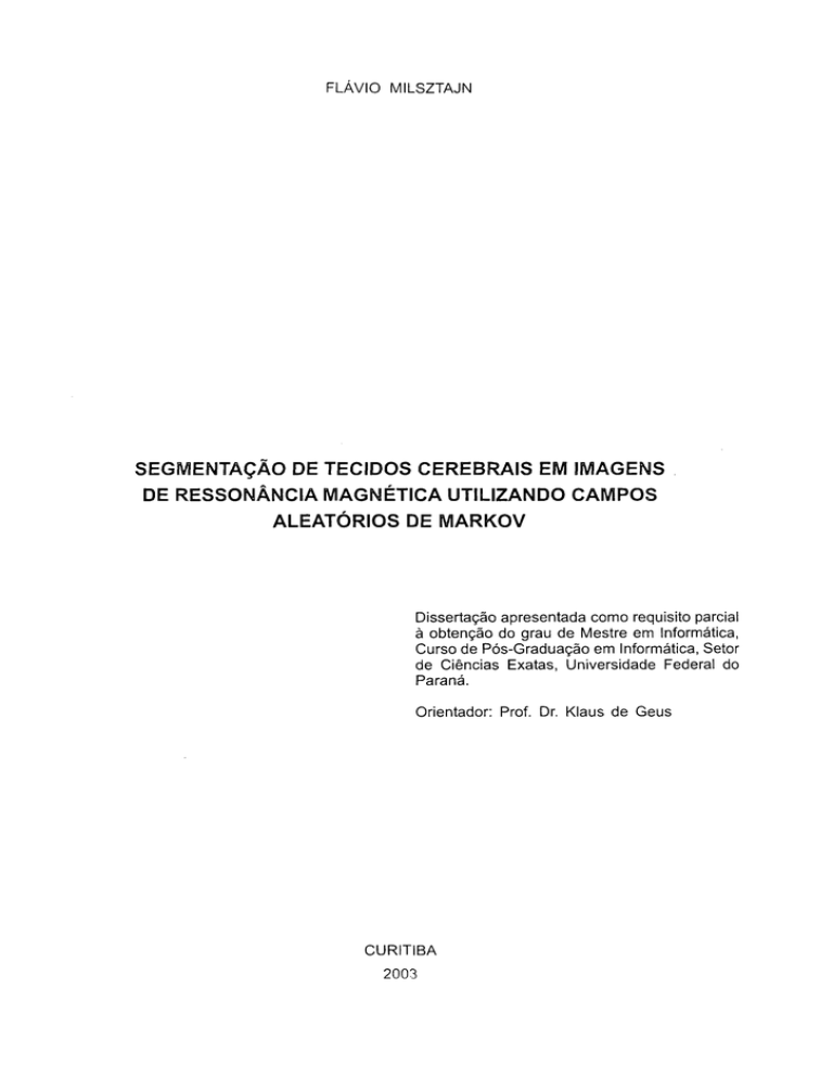 intitulado, "Segmentação de tecidos cerebrais em imagens de ressonância magnética utilizando