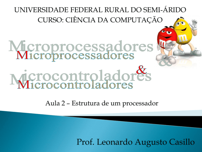 UNIVERSIDADE FEDERAL RURAL DO SEMI-ÁRIDO CURSO: CIÊNCIA DA COMPUTAÇÃO Aula 2 – Estrutura de um processador Prof. Leonardo Augusto Casillo Arquitetura de Von Neumann: ◦ Conceito de programa armazenado; Dados e instruções armazenados em uma única memória de leitura e escrita. ◦ Endereçamento da memória por posição e não pelo tipo; ◦ Execução seqüencial de instruções; ◦ Único caminho entre memória e CPU . Arquitetura de Harvard: ◦ ◦ ◦ ◦ Variação da arquitetura de Von Neumann. Memórias separadas para dados e instruções. Barramentos separados para instruções e dados. Termo originado dos computadores Mark I a Mark IV 2 3 CPU ULA Unidade de controle Bus de Endereços Bus de Dados Bus de Controle MEMÓRIA DE DADOS E DE PROGRAMA UNIDADES DE E/S 4 Bus de Endereços da MD Bus de Endereços da MP Bus de Dados da MP CPU Bus de Dados da MD Bus de Controle MEMÓRIA DE DADOS MEMÓRIA DE PROGRAMA UNIDADES DE E/S 5 Processadores: CPU, controladores e co-processadores Possuem conjunto de instruções operando sobre instruções e dados organizados em palavras Memórias 2 subsistemas: externa e interna Custo relacionado à capacidade de armazenamento e velocidade de operação Sistema de E/S Conversores de representação física de dados Lentos Sistema de interconexão Comunicação entre componentes através de barramentos e slots sob seu controle Disputa pelo uso de recursos compartilhados. Registradores mais comuns dentro de um processador: Acumulador (AC) Contador de programa (PC) Apontador de pilha (SP) Registrador de instrução (IR) Buffer de endereço de memória (MAR) Buffer de dados da memória (MBR) Registradores de uso geral CPU • Unidade operativa (ULA) • Unidade de Controle Memória • Principal • Registradores E/S Processador tipo LOAD-STORE com 40 bits de palavra. Memória consiste em mil posições (palavras) constituídas de 40 bits. Dados e instruções ambos armazenados na memória. Cada instrução possui um código binário de operação (CodOp). Cada número é representado por um bit de sinal e um valor de 39 bits. Uma palavra pode conter duas instruções de 20 bits, sendo 8 bits para o CodOp e endereço de 12 bits, que designa uma palavra de memória (0 a 999). Registradores presentes no IAS: ◦ MAR – especifica o endereço na memória da palavra a ser lida ou escrita do MBR; ◦ MBR – contém uma palavra a ser armazenada na memória ou uma palavra recebida da memória; ◦ IR – contém o código da operação de 8 bits utilizado; ◦ IBR – contém a instrução (completa) do lado direito de uma palavra da memória; ◦ PC – contém o endereço do próximo par de instruções a ser buscado na memória; ◦ AC – armazena temporariamente o operando da ULA e os 40 bits mais significativos de uma multiplicação; ◦ MQ – quociente de multiplicação: armazena os 40 bits menos significativos de uma multiplicação. Início Busca da próxima instrução Execução da instrução Busca: ◦ Busca da instrução ◦ Atualiza PC ◦ Decodificação Execução: ◦ Busca operandos (se necessário) ◦ Executa ◦ Armazena resultado (se necessário) Parada PC = 12 bits MAR = 12 bits MBR = 40 bits IR = 8 bits IBR = 20 bits AC = 40 bits MQ = 40 bits 1ª busca: 1º teste - Não 2º teste - Sim IAS contém 21 instruções, divididas entre os grupos: Transferência de dados: entre memória e registradores da ULA ou entre dois registradores da ULA; Desvio incondicional: altera a sequência de instruções da memória; Desvio condicional: permite dois pontos de decisão; Aritmética: operações executadas pela ULA; Alteração de endereço: calcula endereços utilizando a ULA para inseri-los em instruções armazenadas na memória. Cada processador possui seu próprio conjunto de instruções, embora exista um subconjunto básico utilizado por todos os processadores de modo geral; Instruções com mesma função podem ter nomes variados para cada processador (ex: multiplicação pode ser MUL ou MPY); Os campos das instruções também variam de acordo com cada processador (ex: um campo pode representar um endereço ou um operando); Existem instruções que referenciam 0, 1, 2 ou 3 registradores; Variáveis são, na verdade, ponteiros de endereços de memória. Para converter um programa de alto nível para baixo nível, deve-se adotar os seguintes passos: ◦ Escrever o programa de modo mais detalhado possível na forma de algoritmo (pseudo-código / portugol / português estruturado / descrição narrativa / etc) ◦ Opcionalmente, é válido escrever o algoritmo na forma de fluxograma, sendo cada etapa do fluxograma representando uma ação do processador ou uma transferência entre seus registradores (nível RTL) ou transferência processador memória ◦ É necessário conhecer a arquitetura (parte operativa) do processador que executará o programa, em particular a quantidade de bits e palavras, os registradores do processador e as operações da ULA “C <= A + B;” Uma simples instrução em alto nível pode ser convertida em várias instruções em baixo nível. Para realizar esta conversão, algumas perguntas devem ser respondidas: ◦ ◦ ◦ ◦ Quem são e de onde vêm A e B? Onde armazenar C? Quais as entrada da ULA? O processador é do tipo LOAD-STORE (memória – processador) ou MÁQUINA COM REGISTRADORES (registrador-registrador ou registrador – memória)? Detalhamento da instrução, considerando um computador LOAD-STORE e uma das entradas da ULA fixa (acumulador): Ler valor de A da memória; Transferir o valor de A para o acumulador; Ler valor de B da memória; Transferir o valor de B para o segundo registrador de entrada da ULA; ◦ Realizar operação de SOMA (ADD) na ULA; ◦ Salvar o valor de C (enviar para a memória) ◦ ◦ ◦ ◦ ◦ ***Algumas destas instruções podem ser agrupadas em instruções únicas, dependendo do conjunto de instruções do processador. (EX: ler o valor de A da memória e tr