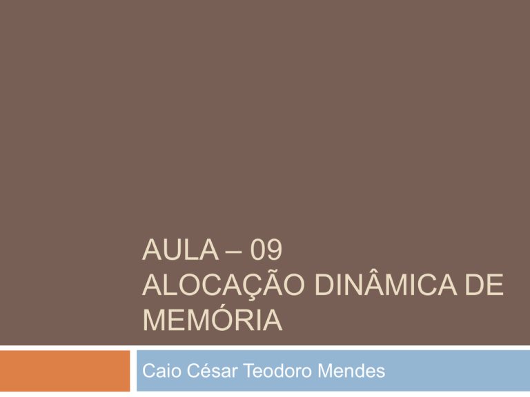 AULA – 09 ALOCAÇÃO DINÂMICA DE MEMÓRIA Caio César Teodoro Mendes Pointeiros - Analogia Cada gaveta possui um objeto (variavéis comum) Gaveta possui um endereço (Ponteiro) E1 E2 E3 E4 Gavetas endereçadas E2 E7 Memória Endereço 32 bits 0x00000001 Dado 8 bits 0xaf Char 8 bits Memória Endereço 32 bits Dado 8 bits 0x00000001 0x00 0x00000002 0x03 0x00000003 0x01 0x00000004 0xf0 Inteiro 32 bits Memória Endereço 32 bits Dado 8 bits 0x00000001 0x00 0x00000002 0x03 0x00000003 0x01 0x00000004 0xf0 Ponteiro 32 bits Memória Endereço 32 bits Dado 8 bits 0x00000001 0x0a 0x00000002 Dado 8 bits 0x0a000001 0x00 0x00 0x00000003 0x00 0x00000004 0x01 Ponteiro Endereço 32 bits Char Memória Endereço 32 bits Dado 8 bits Endereço 32 bits Dado 8 bits 0x00000001 0x0a 0x0a000001 0x00 0x00000002 0x00 0x0a000002 0x03 0x00000003 0x00 0x0a000003 0x01 0x00000004 0x01 0x0a000004 0xf0 Ponteiro Inteiro Programação int dado; printf(“%d\n”, dado); printf(“%x”, &dado); 197104 0x0a000001 Endereço 32 bits Dado 8 bits 0x0a000001 0x00 0x0a000002 0x03 0x0a000003 0x01 0x0a000004 0xf0 Inteiro Programação char dado; printf(“%c\n”, dado); printf(“%x”, &dado); A 0x0a000001 Endereço 32 bits Dado 8 bits 0x0a000001 0x41 Programação int dado; int * ponteiro; ponteiro = &dado; printf(“%d\n”, dado); printf(“%x\n”, &dado); printf(“%x\n”, ponteiro); printf(“%x”, &ponteiro); 197104 0x0a000001 0x0a000001 0x00000001 Endereço 32 bits Dado 8 bits Endereço 32 bits Dado 8 bits 0x00000001 0x0a 0x0a000001 0xf0 0x00000002 0x00 0x0a000002 0x01 0x00000003 0x00 0x0a000003 0x03 0x00000004 0x01 0x0a000004 0x00 Ponteiro Inteiro Função malloc void * malloc ( size_t size ); Retorno: ponteiro Entrada: Quantidade de memória (bytes) Programação int * ponteiro; ponteiro = (int *) malloc(sizeof(int)); *pointeiro = 10; printf(“%d”, *ponteiro); Endereço 32 bits Dado 8 bits Endereço 32 bits Dado 8 bits 0x00000001 0x0a 0x0a000001 0x0a 0x00000002 0x00 0x0a000002 0x00 0x00000003 0x00 0x0a000003 0x00 0x00000004 0x01 0x0a000004 0x00 Ponteiro Inteiro Programação int * ponteiro; ponteiro = (int *) malloc(2 * sizeof(int)); pointeiro[0] = 10; ponteiro[1] = 11; printf(“%d”, *ponteiro); // == ponteiro[0] printf(“%d”, *(ponteiro+1)); // == ponteiro[1] Endereço 32 bits Dado 8 bits 0x00000001 0x0a 0x00000002 0x00 0x00000003 0x00 0x00000004 0x01 Ponteiro Endereço 32 bits Dado 8 bits 0x0a000001 0x0a 0x0a000002 0x00 0x0a000003 0x00 0x0a000004 0x00 0x0a000005 0x0b 0x0a000006 0x00 0x0a000007 0x00 0x0a000008 0x00 2 Inteiros Programação char * ponteiro; ponteiro = (char *) malloc(10); Endereço 32 bits gets(ponteiro); printf(“%s”, ponteiro); Endereço 32 bits 0x0a000001 0x0a 0x0a000002 0x00 0x0a000003 0x00 0x0a000004 0x00 0x0a000005 0x0b 0x0a000006 0x00 0x0a000007 0x00 0x0a000008 0x00 0x0a000009 0x0a 0x0a00000a 0x00 Dado 8 bits 0x00000001 0x0a 0x00000002 0x00 0x00000003 0x00 0x00000004 0x01 Ponteiro Dado 8 bits 10 char Função free void free ( void * ptr ); Entrada: Ponteiro a ser desalocado. Programação int * ponteiro; ponteiro = (int *) malloc(sizeof(int)); *pointeiro = 10; printf(“%d”, *ponteiro); free(ponteiro); Endereço 32 bits Dado 8 bits Endereço 32 bits Dado 8 bits 0x00000001 0x0a 0x0a000001 0x0a 0x00000002 0x00 0x0a000002 0x00 0x00000003 0x00 0x0a000003 0x00 0x00000004 0x01 0x0a000004 0x00 Ponteiro Inteiro Exercício wiki.icmc.usp.br