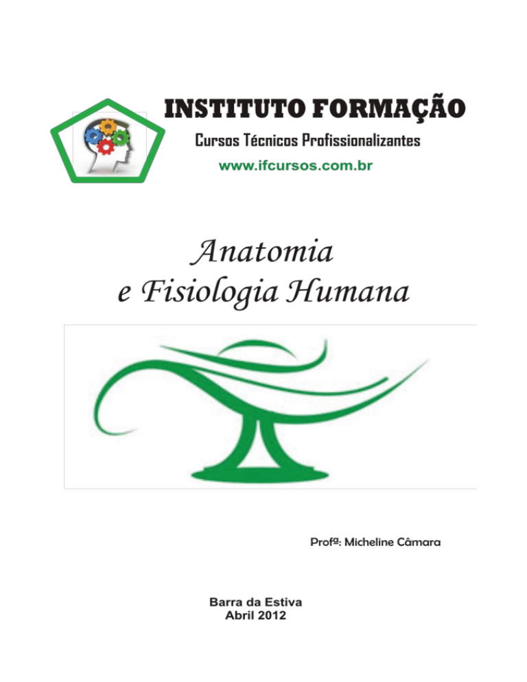 2 APRESENTAÇÃO A Anatomia constitui um dos estudos mais antigos da humanidade. Cinco milênios antes de Cristo os egípcios já desenvolveram técnicas de conservação dos corpos e rudimentares intervenções cirúrgicas. Na Grécia, Hipócrates, conhecido como o pai da medicina, dissecava os corpos em busca de compreensão para os mistérios da vida. Para entender as estruturas e as funções do corpo humano, estudaremos as ciências da anatomia e da fisiologia. A anatomia (anatome=cortar em partes, corta separando) refere-se ao estudo da estrutura e das relações entre estas estruturas. A fisiologia (do grego physis = natureza, função ou funcionamento; e logos = palavra ou estudo) lida com as funções das partes do corpo, isto é, como elas trabalham. A função nunca pode ser separada completamente da estrutura, por isso você aprenderá sobre o corpo humano estudando a anatomia e a fisiologia em conjunto. Você verá como cada estrutura do corpo está designada para desempenhar uma função específica, e como a estrutura de uma parte, muitas vezes, determina sua função. Você está iniciando o estudo do corpo humano e pode aprender como ele é organizado e como funciona. Através deste módulo você será introduzido aos vários sistemas que compõem o nosso organismo. Você também aprenderá como estes sistemas, em geral, cooperam entre si, para manter a saúde do corpo como um todo e como estes sistemas interagem para mantê-lo saudável. Anatomia e Fisiologia Humana www.ifcursos.com.br Profª Micheline Câmara 3 CAPITULO I ESTRUTURA DO CORPO HUMANO Níveis de Organização O corpo humano possui seis níveis de organização estrutural: o químico, o celular, o tecidual, o orgânico, o sistêmico e o de organismo. Nível químico: inclui todas as substâncias químicas necessárias para manter a vida. As substâncias químicas são constituídas de átomos, a menor unidade de matéria, e alguns deles, como o carbono (C), o hidrogênio (H), o oxigênio (O), o nitrogênio (N), o cálcio (Ca), o potássio (K) e o sódio (Na) são essenciais para a manutenção da vida. Os átomos combinam-se para formar moléculas. Exemplos familiares de moléculas são as proteínas, os carboidratos, as gorduras e as vitaminas. As moléculas, por sua vez, combinam-se para formar o próximo nível de organização: o nível celular. Nível celular: Qualquer organismo vivo é composto de células. As células são unidades estruturais e funcionais básicas de um organismo. É nelas que se executam as atividades metabólicas. Entre os muitos tipos de células existentes em seu corpo estão as células musculares, nervosas e sanguíneas. Cada uma tem estruturas diferentes e cada uma desenvolve uma função diferente. Nível tecidual: Os tecidos são grupos de células semelhantes na aparência, função e origem embrionária que, juntas, realizam uma função particular. Os tipos básicos de tecido são: tecido epitelial, tecido de sustentação, tecido sanguíneo, tecido muscular e tecido nervoso. Nível orgânico: quando diferentes tipos de tecidos estão unidos formam o nível orgânico. Os órgãos são compostos de dois ou mais tecidos diferentes, têm funções específicas e geralmente apresentam uma forma reconhecível. Exemplos de órgãos: o coração, os pulmões, o cérebro, etc. Nível sistêmico: Um sistema consiste de órgãos relacionados que desempenham uma função comum. Exemplo: O sistema digestório que funciona na digestão e na absorção dos alimentos é composto pelos seguintes órgãos: boca, glândulas salivares, faringe (garganta), esôfago, estômago, intestino delgado, intestino grosso, fígado, vesícula biliar e pâncreas. O sistema é a base para o plano estrutural geral de um corpo. Organismo: O mais alto nível de organização é o organismo. Todos os sistemas do corpo, funcionando como um todo compõe o organismo = um ser vivo. Relação entre os sistemas À medida que os sistemas do corpo forem estudados com mais profundidade, você verá como eles funcionam para manter a saúde, protege-lo contra doenças e permitir a reprodução da espécie. Exemplo de interação entre os sistemas: consideramos como dois sistemas do corpo – os sistemas tegumentar e esquelético – cooperam entre si. O sistema tegumentar (pele, pêlos e unhas) protege todos os sistemas do corpo, incluído o sistema ósseo, por meio da função de barreira entre o ambiente externo e os tecidos e os órgãos internos. A pele (cútis) também está envolvida na produção de vitamina D, da qual o corpo necessita para a utilização apropriada de cálcio (mineral necessário para o crescimento e desenvolvimento dos ossos). O sistema esquelético, por sua vez fornece sustentação para o sistema tegumentar. A essas interações entre os sistemas dá-se o nome de Aparelho. Anatomia e Fisiologia Humana www.ifcursos.com.br Profª Micheline Câmara 4 Processos Vitais Todos os organismos vivos apresentam certas características que os diferenciam das coisas nãovivas.Os processos vitais importantes no ser humano são: O metabolismo (metábole=mudança): que é a soma de todos os processos químicos que ocorrem no corpo. Uma fase do metabolismo, chamada de catabolismo (cata=para baixo), envolve o desdobramento de moléculas complexas em moléculas menores e mais simples. Um exemplo é a quebra de proteínas alimentares em seus constituintes, os aminoácidos. A outra fase do metabolismo, chamada de anabolismo (ana=para cima), utiliza energia gerada pelo catabolismo para a construção dos componentes estruturais e funcionais do corpo. Um exemplo de anabolismo é a síntese protética que forma músculo e ossos. A responsibilidade é a capacidade de detectar e responder às mudanças no meio externo (ambiente fora do corpo). Células diferentes detectam diferentes alterações e respondem de maneira característica. Por exemplo, os neurônios (células nervosas) respondem por meio da geração de