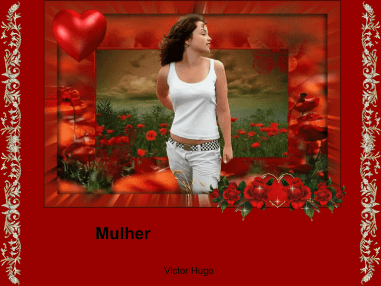 Mulher Victor Hugo O homem é um oceano. A mulher é um lago O oceano tem a pérola que embeleza. O lago tem a poesia que deslumbra. O homem pensa. A mulher sonha. Pensar é ter cérebro. Sonhar é ter na fronte uma auréola. O homem é a águia que voa. A mulher, o rouxinol que canta Voar é dominar o espaço. Cantar é conquistar a alma. O homem tem um farol: a consciência. A mulher tem uma estrela: a esperança O farol guia. A esperança salva. Enfim, o homem está colocado onde termina a terra. A mulher, onde começa o céu!!! Victor Hugo Boa Semana para você Clique aqui entre na página www.sergrasan.com/veraluzia [email protected] Imagens da internet Música:Love is a many splendored Thing Formatação:A.Carlos e Vera Luzia