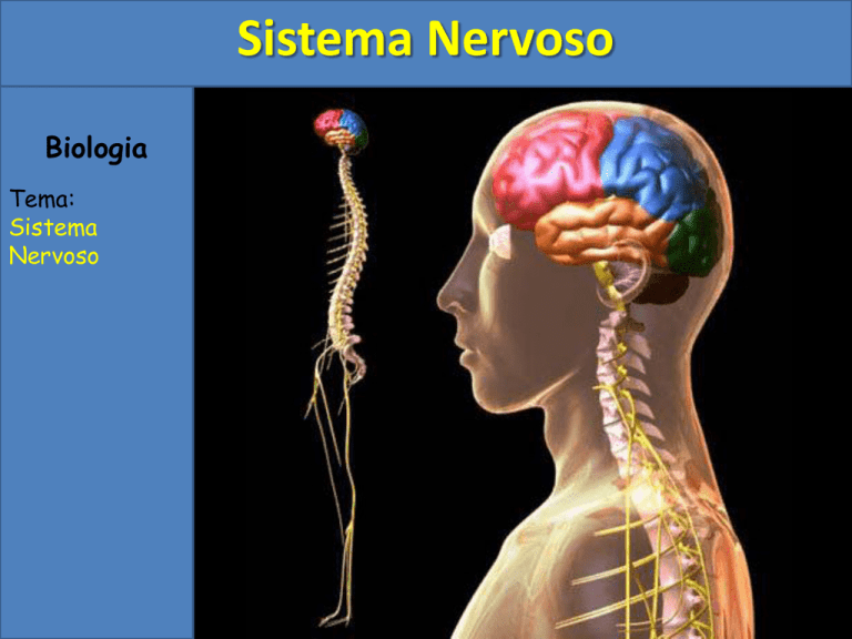 Sistema Nervoso Biologia Tema: Sistema Nervoso Sistema Nervoso 1) Introdução O sistema nervoso é responsável pelo ajustamento do organismo ao ambiente. Sua função é perceber e identificar as condições ambientais externas, bem como as condições reinantes dentro do próprio corpo e elaborar respostas que adaptem a essas condições. 2) Organização do sistema nervoso humano Cérebro Encéfalo Sistema Nervoso Central (SNC) Cerebelo Tronco Encefálico Ponte Bulbo Medula Sistema Nervoso Periférico (SNP) Nervos cranianos (12 pares) Nervos raquidianos (31 pares) Terminações nervosas Sistema Nervoso 3) Sistema nervoso central (SNC) a) Encéfalo Possui cerca de 1,4 kg nos adultos Está localizado na caixa craniana Dividido em 3 partes: cérebro, cerebelo e tronco encefálico Encéfalo cérebro cerebelo Tronco encefálico Sistema Nervoso 3) Sistema nervoso central (SNC) a) Encéfalo I) Cérebro Constitui cerca de 90% da massa encefálica Sua superfície é bastante pregueada (aumento da superfície) Dividido em dois hemisférios (esquerdo e direito) Dividido em duas partes: o Córtex (externo) – substância cinzenta (corpos neuronais) o Região interna – substância branca (dendritos e axônios) Sistema Nervoso 3) Sistema nervoso central (SNC) a) Encéfalo I) Cérebro Funções: o Sensações o Atos conscientes e voluntários (movimentos) o Pensamento o Memória o Inteligência o Aprendizagem o Sentidos Sistema Nervoso 3) Sistema nervoso central (SNC) II) Cerebelo Responsável pelo equilíbrio do corpo Tônus e vigor muscular Orientação espacial Coordenação dos movimentos Cerebelo Sistema Nervoso 3) Sistema nervoso central (SNC) III) Tronco encefálico 3 divisões: Mesencéfalo Ponte Bulbo Mesencéfalo Ponte Bulbo Sistema Nervoso 3) Sistema nervoso central (SNC) III) Tronco encefálico Bulbo o Controle dos batimentos cardíacos o Controle dos movimentos respiratórios o Controle da deglutição (engolir) Bulbo Sistema Nervoso 3) Sistema nervoso central (SNC) b) Medula Espinhal (raque) Cordão cilíndrico que parte da base do encéfalo e percorre toda a coluna vertebral. Aloja-se dentro das perfurações das vértebras. Da medula espinhal partem 31 pares de nervos raquidianos Sistema Nervoso 3) Sistema nervoso central (SNC) b) Medula Espinhal (raque) Funções da medula o Recebe as informações de diversas partes do corpo e as enviam para o encéfalo e vice-versa. o Responsável pelos atos reflexos (reflexo medular). Sistema Nervoso 3) Sistema nervoso central (SNC) b) Medula Espinhal (raque) Reflexo Medular A medula espinhal é capaz de elaborar respostas rápidas em situações de emergência, sem a interferência do encéfalo. Sistema Nervoso 3) Sistema nervoso central (SNC) c) Meninges São três (SNC). o o o delicadas membranas que revestem e protegem o sistema nervoso central Dura-máter Aracnóide Pia-máter Medula espinhal Encéfalo Sistema Nervoso 4) Sistema nervoso periférico (SNP) Divisão do sistema nervoso periférico Sistema Nervoso Voluntário (somático) Ações conscientes: andar, falar, pensar, movimentar um braço, etc. Sistema Nervoso Autônomo (visceral) Ações inconscientes: controle da Simpático digestão, batimentos cardíacos, Parassimpático movimento das vísceras, etc. Sistema Nervoso 4) Sistema nervoso periférico (SNP) a) Sistema Nervoso Voluntário (Somático) Formado por nervos motores que conduzem impulsos do sistema nervoso central (SNC) à musculatura estriada esquelética. Determina ações conscientes: Andar, falar, abraçar, correr, etc. SNC Corpos celulares dentro do SNC Axônios controlando a musculatura esquelética Sistema Nervoso 4) Sistema nervoso periférico (SNP) b) Sistema Nervoso Autônomo É dividido em duas partes: I. Simpático II. Parassimpático Sistema Nervoso Simpático: Prepara o organismo para o estresse (instinto de fuga ou luta) Sistema Nervos Parassimpático: Estimula atividades relaxantes (repouso) Ações antagônicas no organismo! Sistema Nervoso Exercícios Sistema Nervoso 1) (VUNESP) Quando uma pessoa encosta a mão em um ferro quente, ela reage imediatamente por meio de um reflexo. Neste reflexo o neurônio efetuador (motor) leva o impulso nervoso para: a) a medula espinhal. b) o encéfalo. c) os músculos flexores do braço d) as terminações sensoriais de calor na ponta dos dedos. e) as terminações sensoriais de dor na ponta dos dedos. Resposta: C 2) Se o cerebelo de um rato for destruído, ele perderá a capacidade de: a) digerir alimentos. b) respirar. c) andar. d) eliminar excretas e) produzir anticorpos. Resposta: C Sistema Nervoso 3) Assinale a alternativa que apresenta de forma correta, a condução do impulso nervoso nos neurônios sensorial e motor. a) O estímulo nervoso se propaga do dendrito para o corpo celular e deste para o axônio no neurônio sensorial, e o inverso no neurônio motor. b) O estímulo nervoso se propaga do axônio para o corpo celular e deste para o dendrito no neurônio sensorial, e o inverso no neurônio motor. c) O estímulo nervoso se propaga do dendrito para o corpo celular e deste para o axônio no neurônio sensorial e no neurônio motor. d) O estímulo nervoso se propaga do axônio para o corpo celular e deste para o dendrito, tanto no neurônio sensorial como no motor. e) O estímulo nervoso se propaga do dendrito para o corpo celular ou do corpo celular para o dendrito no neurônio sensorial e do corpo celular para o axônio no neurônio motor. Resposta: C Sistema Nervoso 4) Dos sistemas abaixo relacionados, qual está subordinado ao sistema nervoso vegetativo ou autônomo? a) sistema muscular estriado. b) sistema ósseo. c) todo o sistema de revestimento. d) sistema ósteo-articular e) sistema glandular. Resposta: e 5) Considere os seguintes elementos do sistema nervoso: I- encéfalo II- medula III- nervos cranianos IV- nervos raquidianos O sistema nervoso central é constituído por: a) II e III b) III e IV c) I e II d) I e III e) II e IV Resposta: c Sistema Ne