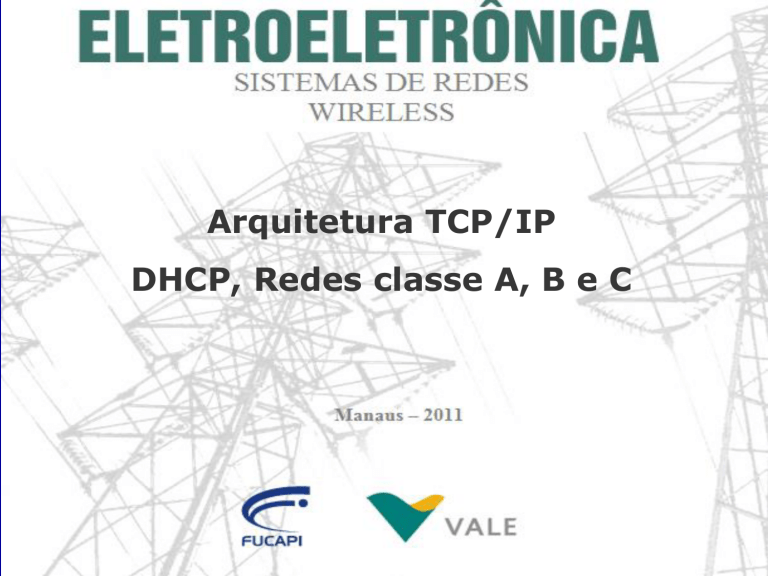 Arquitetura TCP/IP DHCP, Redes classe A, B e C Índice Endereços IP Arquitetura TCP/IP DHCP Redes classe A, B e C Protocolos TCP/IP Endereços IP 3 Endereços IP IP significa “Internet Protocol”. A Internet é uma rede, e assim como ocorre em qualquer tipo de rede, os seus nós (computadores, impressoras, etc.) precisam ter endereços. Graças a esses endereços, as informações podem trafegar pela rede até chegar ao destino correto. Endereços IP são formados por quatro bytes. Cada byte pode representar um número decimal de 0 a 255. Portanto um endereço IP é formado por quatro números, entre 0 e 255. Por exemplo, na figura ao lado, o computador em teste está usando o endereço IP: 192.168.0.2 4 Endereços IP na Internet Todos os computadores na Internet que operam como hosts, ou sejam que têm algum conteúdo hospedado ou cujas informações possam ser acessadas por outros computadores, utilizam endereços IP externos. Por exemplo, o site portal.fucapi.br está hospedado em um servidor cujo endereço IP é: 200.242.70.64 Outros exemplos: Google: 209.85.165.147 Microsoft: 198.66.137.165 OBS: Para descobrir o endereço IP do servidor onde está hospedado um site, use o comando PING. Por exemplo: PING www.globo.com Índice 5 Endereços IP em rede local Em meados dos anos 90 tornou-se comum o uso do protocolo TCP/IP em redes locais. A estrutura das redes locais passa a ser semelhante à estrutura da Internet, o que traz vários benefícios. Computadores de uma rede local utilizam endereços IP, porém com uma diferença: normalmente usam endereços IP internos, que são válidos apenas na rede local. É como ter por exemplo, números de ramais internos de uma central telefônica. Esses números existem apenas na central em questão. OBS: Note como em uma rede local os computadores usam endereços “parecidos”. Esta é uma regra a ser seguida, como explicaremos adiante. Índice 6 Arquitetura TCP/IP Índice 7 Arquitetura TCP/IP O diagrama ao lado é uma forma abstrata de visualizar o funcionamento das redes. Seu conhecimento não é necessário para quem quer apenas aprender passo-a-passo como configurar uma rede, mas é indispensável para quem pretende obter mais especialização e trabalhar com redes. Os programas “enxergam” a rede e a Internet como um sistema dividido em cinco camadas: 1: Cabos e hubs 2: Placas de rede 3: Protocolo IP 4: Protocolos UDP e TCP 5: Protocolos HTTP, DNS, FTP, SMTP, etc. TCP/IP é na verdade um conjunto de protocolos que ocupam as camadas 3, 4 e 5 deste modelo. Índice 8 Cinco camadas do TCP/IP Explicando melhor: A camada 5 (aplicação) é onde são executados os diversos protocolos usados pelos diversos programas. Por exemplo, os navegadores usam o protocolo HTTP. A camada 4 (transporte) é onde ficam os protocolos TCP e UDP, que por sua vez servem aos protocolos da camada 5. A camada 3 (Rede) é onde fica o protocolo IP, e é responsável por fazer com que cada informação chegue ao local correto. As camadas 1 e 2 são formadas por placas, cabos e equipamentos. Seguem o padrão ETHERNET. Índice 9 DHCP Índice 10 DHCP Todos os equipamentos de uma rede baseada em TCP/IP precisam ter um endereço IP. Esses endereços não são aleatórios. Existem regras que os definem. O método mais comum para a definição desses endereços é o uso de um servidor DHCP. Trata-se de um computador ou um equipamento de rede capaz de distribuir endereços IP para os demais computadores. No exemplo ao lado, o computador recebeu o IP 192.168.0.2, que foi definido por um servidor DHCP existente na rede, cujo endereço é 192.168.0.1. OBS: DHCP significa: Dynamic Host Control Protocol. Índice 11 Funcionamento do DHCP Um servidor DHCP simplesmente mantém uma tabela contendo os nomes dos diversos computadores da rede e atribui a eles IPs dentro de uma faixa de endereços. No exemplo ao lado, esta tabela seria: Nome do computador IP SERVIDOR 192.168.0.1 PC01 192.168.0.2 PC02 192.168.0.3 PC03 192.168.0.4 PC07 192.168.0.5 PC04 192.168.0.6 PC05 192.168.0.7 PC06 192.168.0.8 Digamos que acabamos de ligar o computador PC03. Ele enviará então a seguinte mensagem pela rede: “Eu sou PC03, tem algum DHCP nesta rede?”. O DHCP receberá esta mensagem, consultará esta tabela e descobrirá que PC03 já recebeu anteriormente um IP. Enviará então a mensagem: “PC03, você ficará com o IP 192.168.0.4. Índice 12 Funcionamento do DHCP Digamos que agora mais um computador foi instalado na rede, e que seu nome seja PC08. Ao ser iniciado o sistema, ele “pedirá um IP” ao servidor DHCP. Nome do computador IP SERVIDOR 192.168.0.1 PC01 192.168.0.2 PC02 192.168.0.3 PC03 192.168.0.4 PC07 192.168.0.5 PC04 192.168.0.6 PC05 192.168.0.7 PC06 192.168.0.8 PC08 192.168.0.9 O servidor DCHP consultará sua tabela e verá que nunca foi dado um IP a este computador. Será então criada uma nova entrada na tabela, e a ele será atribuído um novo IP: 192.168.0.9. Índice 13 APIPA A Microsoft registrou no iana.org, uma entidade encarregada da distribuição de IPs por todo o mundo, uma faixa de endereço para uso em redes que não possuem DHCP. Esta faixa é: 169.254.0.0 a 169.254.255.255 Quando um computador com Windows conclui que não existe DHCP na rede, usará automaticamente um IP começando com 169.254 e terminando com dois números que são gerados em função da configuração de hardware do computador. Isso garante que os computadores terão IPs “compatíveis”. APIPA significa Automatic Programmed IP Address. Índice 14 Redes classe A, B e C Índice 15 www.iana.org O IANA (Internet Assigned Numbers Authority) é uma organização responsável pela regulamentação do uso da Internet em todo o mundo. Nela as diversas empresas reservam faixas de endereços IP. Também é feita a distribuição de IPs por países. Estão registradas por exemplo, diversas faixas de IP por empresas. Por exemplo, a General Electric é detentora da rede classe A número 3, que vai de 3.0.0.0 a 3