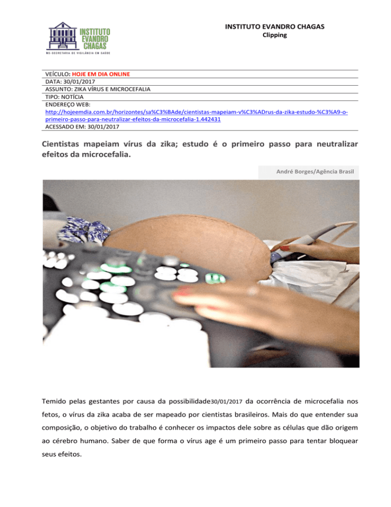 INSTITUTO EVANDRO CHAGAS Clipping VEÍCULO: HOJE EM DIA ONLINE DATA: 30/01/2017 ASSUNTO: ZIKA VÍRUS E MICROCEFALIA PÁG. A14 TIPO: NOTÍCIA ENDEREÇO WEB: http://hojeemdia.com.br/horizontes/sa%C3%BAde/cientistas-mapeiam-v%C3%ADrus-da-zika-estudo-%C3%A9-oprimeiro-passo-para-neutralizar-efeitos-da-microcefalia-1.442431 ACESSADO EM: 30/01/2017 Cientistas mapeiam vírus da zika; estudo é o primeiro passo para neutralizar efeitos da microcefalia. André Borges/Agência Brasil Temido pelas gestantes por causa da possibilidade30/01/2017 da ocorrência de microcefalia nos fetos, o vírus da zika acaba de ser mapeado por cientistas brasileiros. Mais do que entender sua composição, o objetivo do trabalho é conhecer os impactos dele sobre as células que dão origem ao cérebro humano. Saber de que forma o vírus age é um primeiro passo para tentar bloquear seus efeitos. INSTITUTO EVANDRO CHAGAS Clipping VEÍCULO: HOJE EM DIA ONLINE DATA: 30/01/2017 ASSUNTO: ZIKA VÍRUS E MICROCEFALIA PÁG. A14 TIPO: NOTÍCIA ENDEREÇO WEB: http://hojeemdia.com.br/horizontes/sa%C3%BAde/cientistas-mapeiam-v%C3%ADrus-da-zika-estudo-%C3%A9-oprimeiro-passo-para-neutralizar-efeitos-da-microcefalia-1.442431 ACESSADO EM: 30/01/2017 Os resultados da pesquisa mostram que o invasor microscópico é capaz de travar a multiplicação celular e de impedir que neurônios maduros apareçam. Essa característica provavelmente explica o tamanho reduzido do cérebro dos recém-nascidos afetados pelo vírus quando estavam na barriga da mãe. Ao fim do trabalho, a equipe coordenada por Patricia Garcez e Stevens Rehen, da Universidade Federal do Rio de Janeiro (UFRJ) e do Instituto D'Or de Pesquisa e Ensino, conseguiu uma biblioteca de mais de 500 proteínas e genes das células humanas que parecem ser manipulados ou alterados indiretamente pela presença do vírus. Algumas dessas moléculas podem se revelar alvos promissores para medicamentos que bloqueiem a ação do vírus de modo específico - algo que não existe hoje. Os pesquisadores estão tentando desvendar os aspectos básicos da biologia do vírus da zika desde que ele foi ligado à epidemia de microcefalia em bebês do Nordeste. Para obter os resultados, os pesquisadores expuseram células-tronco neurais ao vírus durante duas horas e compararam o desenvolvimento das amostras infectadas com outras não infectadas, o que mostrou os efeitos causados pela zika na formação do cérebro. Os primeiros resultados foram similares aos que a equipe já tinha observado em estudos anteriores: as células dos neurônios infectadas com o zika eram menores que as não infectadas e, com o passar do tempo, começaram a sumir. Outra descoberta sobre o comportamento do vírus chamou a atenção dos pesquisadores. Os experimentos mostram que a zika não sai matando indiscriminadamente as precursoras dos neurônios. A presença dela leva a uma interrupção no chamado ciclo celular - o processo delicadamente programado pelo qual as células fazem novas cópias do seu material genético e INSTITUTO EVANDRO CHAGAS Clipping VEÍCULO: HOJE EM DIA ONLINE DATA: 30/01/2017 ASSUNTO: ZIKA VÍRUS E MICROCEFALIA PÁG. A14 TIPO: NOTÍCIA ENDEREÇO WEB: http://hojeemdia.com.br/horizontes/sa%C3%BAde/cientistas-mapeiam-v%C3%ADrus-da-zika-estudo-%C3%A9-oprimeiro-passo-para-neutralizar-efeitos-da-microcefalia-1.442431 ACESSADO EM: 30/01/2017 depois se dividem, dando origem a outras células. "A parada no ciclo é uma resposta da célula aos danos em seu DNA", explica Rehen. Outro processo complexo, a chamada neurogênese (células-tronco neurais que dão origem a diferentes formas especializadas de neurônios), também é afetada pelo zika. Os resultados mostram que esse mecanismo que ficou menos ativos nas células infectadas. Financiamento Com laboratórios no Rio, os pesquisadores Rehen e Garcez têm sido afetados pela crise financeira do Estado e pelos problemas mais gerais de financiamento que têm preocupado a comunidade científica brasileira. A situação deles é um pouco menos grave por causa da prioridade que tem sido dada aos estudos sobre o zika. "Boa parte dos recursos federais para zika tem sido repassada, com cortes. Infelizmente, no caso da Faperj (órgão estadual de fomento à pesquisa), nem isso. A porcentagem repassada até agora foi mínima e não permite o andamento das pesquisas", diz Rehen. Também assinam o estudo pesquisadores da Unicamp, da Fiocruz, do Instituto Evandro Chagas e da Universidade Federal do Pará. Os dados estão em artigo na revista especializada "Scientific Reports".