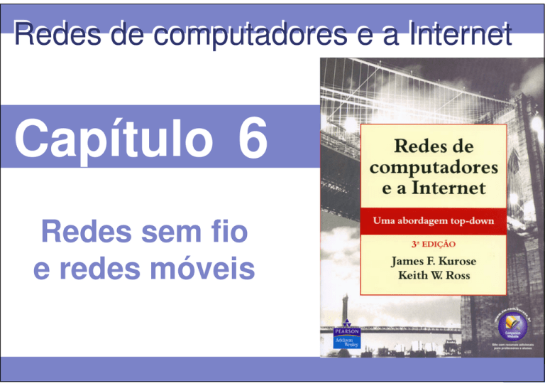 Redes de computadores e a Internet Capítulo 6 Redes sem fio e redes móveis © 2005 by Pearson Education 6-4 6 Redes sem fio e redes móveis Informações gerais: • Número de telefones sem fio (móveis) excede atualmente o número de assinantes de telefones! • Redes de computadores: laptops, palmtops, PDAs, telefones com habilidades para Internet prometem um acesso generalizado à Internet em qualquer lugar e momento • Dois importantes (mas diferentes) desafios • Comunicação sobre enlaces sem fio • Tratamento de usuários móveis que mudam seu ponto de ligação com a rede © 2005 by Pearson Education 6-2 6 Resumo • 6.1 Introdução Sem fio • 6.2 Enlaces sem fio, características • CDMA • 6.3 IEEE 802.11 LANs sem fio (“wi-fi”) • 6.4 Acesso celular à Internet • Arquitetura • Padrões (ex.: GSM) Mobilidade • 6.5 Princípios: endereçamento e roteamento para usuários móveis • 6.6 IP móvel • 6.7 Tratando mobilidade em redes celulares • 6.8 Mobilidade e protocolos de alto nível • 6.9 Resumo © 2005 by Pearson Education 6-3 6 Elementos de uma rede sem fio Hospedeiros sem fio • Laptop, PDA, IP phone • Rodam aplicações • Pode ser fixos ou móveis •“sem fio” nem sempre significa mobilidade © 2005 by Pearson Education 6-4 6 Elementos de uma rede sem fio Estação-base • Tipicamente se conecta à rede cabeada • Relay – responsável por enviar pacotes entre a rede cabeada e os hospedeiros sem fio na sua “área” • Ex.: torres de celular • Pontos de acesso 802.11 © 2005 by Pearson Education 6-5 6 Elementos de uma rede sem fio Enlace sem fio • Tipicamente usado para conectar os hospedeiros móveis à estação-base • Também usado como enlace de backbone • Protocolos de acesso múltiplos coordenam o acesso ao enlace • Várias taxas de dados e distâncias de transmissão © 2005 by Pearson Education 6-6 6 Características de padrões de enlaces sem fio selecionados © 2005 by Pearson Education 6-7 6 Elementos de uma rede sem fio Modo infra-estrutura • A estação-base conecta hospedeiros móveis na rede cabeada • handoff: hospedeiro móvel muda de uma estação-base para a outra © 2005 by Pearson Education 6-8 6 Elementos de uma rede sem fio Modo Ad hoc • Não há estações-base • Nós podem transmitir somente para outros nós dentro do alcance do enlace • Nós se organizam numa rede: roteiam entre eles próprios © 2005 by Pearson Education 6-9 6 Características do enlace sem fio Diferenças do enlace cabeado… • Força reduzida do sinal: os sinais de rádio se atenuam à medida que eles se propagam através da matéria (path loss) • Interferência de outras fontes: as freqüências padronizadas para redes sem fio (ex., 2,4 GHz) são compartilhadas por outros equipamentos (ex., telefone sem fio); motores também produzem interferência • Propagação de múltiplos caminhos: o sinal de rádio se reflete no solo e em objetos. O sinal principal e os refletidos chegam ao destino em instantes ligeiramente diferentes ... tornam a comunicação através (mesmo no caso ponto-a-ponto) de enlaces sem fio muito mais “difícil” © 2005 by Pearson Education 6 - 10 6 Características das redes sem fio Múltiplos remetentes sem fio e receptores criam problemas adicionais (além do acesso múltiplo): Problema do terminal oculto • B, A ouvem um ao outro • B, C ouvem um ao outro • A, C, quando não podem ouvir um ao outro, implica que não se dão conta da sua interferência em B © 2005 by Pearson Education Desvanecimento (fading): • B, A ouvem um ao outro • B, C ouvem um ao outro • A, C não podem ouvir um ao outro, interferindo em B 6 - 11 6 Acesso múltiplo por divisão de código (CDMA) • Usado em vários padrões de canal broadcast (celular, satélite etc.) • Um código único é atribuído a cada usuário; i.e., ocorre um particionamento do conjunto de códigos • Todos os usuários compartilham a mesma freqüência, mas cada usuário tem a sua própria seqüência de “chipping” (i.e., código) para codificar os dados • Sinal codificado = (dados originais) X (seqüência de chipping) • Decodificação: produto interno do sinal codificado e da seqüência de chipping • Permite a coexistência de múltiplos usuários e a transmissão simultânea com um mínimo de interferência (se os códigos forem “ortogonais”) © 2005 by Pearson Education 6 - 12 6 CDMA codificação/decodificação © 2005 by Pearson Education 6 - 13 6 CDMA: interferência de dois transmissores © 2005 by Pearson Education 6 - 14 6 Redes sem fio e redes móveis • 6.1 Introdução Sem fio • 6.2 Enlaces sem fio, características • CDMA • 6.3 IEEE 802.11 LANs sem fio (“wi-fi”) • 6.4 Acesso celular à Internet • Arquitetura • Padrões (ex.: GSM) Mobilidade • 6.5 Princípios: endereçamento e roteamento para usuários móveis • 6.6 IP móvel • 6.7 Tratando mobilidade em redes celulares • 6.8 Mobilidade e protocolos de alto nível • 6.9 Resumo © 2005 by Pearson Education 6 - 15 6 IEEE 802.11 LAN sem fio • 802.11b • 2,4-5 GHz faixa de rádio sem licença • Até 11 Mbps • Direct sequence spread spectrum (DSSS) na camada física • Todos os hospedeiros usam a mesma seqüência de código • Largamente empregado, usando estações-base (pontos de acesso) • 802.11a • Faixa 5-6 GHz • Até 54 Mbps • 802.11g • Faixa 2,4-5 GHz • Até 54 Mbps • Todos usam CSMA/CA para acesso múltiplo • Todos têm estações-base e versão para redes ad hoc © 2005 by Pearson Education 6 - 16 6 802.11 arquitetura de LAN • Hospedeiro sem fio se comunica com a estação-base • Estação-base = ponto de acesso (AP) • Basic Service Set (BSS) (ou “célula”) no modo infra-estrutura contém: • Hospedeiros sem fio • Ponto de acesso (AP): estaçãobase • Modo ad hoc: somente hospedeiros © 2005 by Pearson Education 6 - 17 6 802.11: Canais, associação • 802.11b: o espectro de 