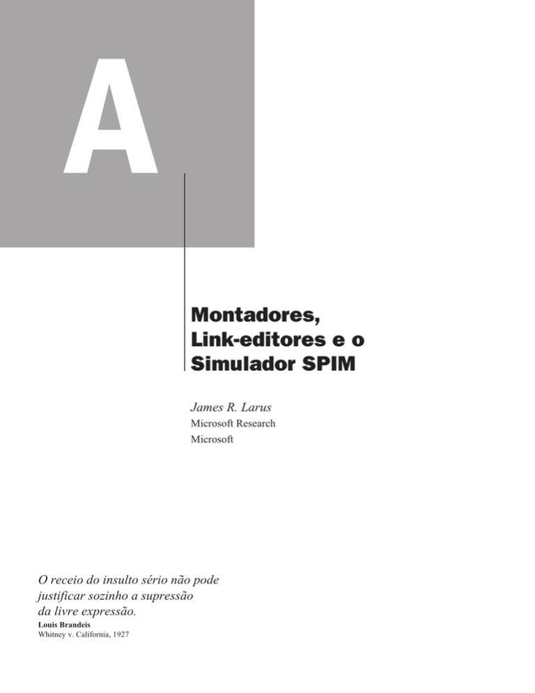 escrita e a leitura de programas. Nomes simbólicos para operações e locais são uma faceta dessa representação. Outra faceta são as facilidades de programação que aumentam a clareza de um programa. Por exemplo, as macros, discutidas na Seção A.2, permitem que um programador estenda o assembly, definindo novas operações.