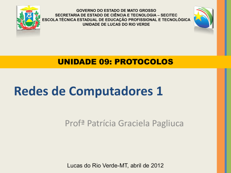 GOVERNO DO ESTADO DE MATO GROSSO SECRETARIA DE ESTADO DE CIÊNCIA E TECNOLOGIA – SECITEC ESCOLA TÉCNICA ESTADUAL DE EDUCAÇÃO PROFISSIONAL E TECNOLÓGICA UNIDADE DE LUCAS DO RIO VERDE UNIDADE 09: PROTOCOLOS Redes de Computadores 1 Profª Patrícia Graciela Pagliuca Lucas do Rio Verde-MT, abril de 2012 SUMÁRIO O que é Protocolo? FTP DNS DHCP NAT WAP TELNET POP IMAP PPP HTTP SNMP IPX/SPX • • • • • • • • • • • • • ARP RARP BOOTP ICMP SMTP TCP UDP IP ENDEREÇAMENTO IP MASCARA DE REDE CIDR REFERENCIAS EXERCICIOS 2 • • • • • • • • • • • • • O QUE É PROTOCOLO? • Um protocolo de comunicação é um conjunto de regras e convenções precisamente definidas que permitem a comunicação através de uma rede. • Esse conjunto de regras estabelece como um computador conecta-se ao outro, como se identifica, quando pode enviar ou receber informações e quanto tempo pode esperar para que cada evento ocorra, bem como a forma de se desfazer a conexão. (MIRANDA, 2007) 3 FTP • File Transfer Protocol ou Protocolo de Transferência de Arquivos, oferece um meio de transferência e compartilhamento de arquivos remotos. Entre os seus serviços, o mais comum é o FTP anônimo, pois permite o Download de arquivos contidos em diretórios sem a necessidade de autenticação. (MIRANDA, 2007) 4 FTP 5 • Provê serviços de transferência, renomeação e eliminação de arquivos, além da criação, modificação e exclusão de diretórios. Para sua operação, são mantidas duas conexões: uma de dados e outra de controle. Não implementa segurança, o que deixa para o TCP, exceto as requisições de senhas de acesso a determinados arquivos (ou servidores FTP). As transferências de arquivos podem ser no modo TEXTO (arquivos ASCII), onde há conversões de codificação para o sistema destinatário, e o modo BINÁRIO (arquivos executáveis), onde não há nenhuma conversão e todos os bytes são transferidos como estão. (MIRANDA, 2007) DNS (Domain Name System) • é um mecanismo para gerenciamento de domínios em forma de árvore. Tudo começa com a padronização da nomenclatura onde cada nó da árvore é separado no nome por pontos. No nível mais alto podemos ter: COM (organizações comerciais), EDU (instituições educacionais), GOV (instituições governamentais), MIL (órgãos militares), ORG (outras organizações), NET (Netwotking), etc. O DNS possui um algoritmo confiável e eficiente para tradução de mapeamento de nomes e endereços. (MIRANDA, 2007) 6 DHCP (Dynamic Host Configuration Protocol) • Com este protocolo, quando um sistema é ligado em rede, é lhe atribuído automaticamente um endereço IP único. Ao mesmo tempo, é fornecida uma série de parâmetros de rede, tais como o endereço do gateway, o endereço do servidor DNS, etc. O protocolo DHCP torna a tarefa do administrador de rede bastante fácil, pois a configuração é centralizada, e não distribuída em cada posto. • É ideal para uso quando existem muitas máquina e utilizado por provedores de internet. (ALECRIM, 2005) 7 NAT (network address translation) • é um protocolo que faz a tradução dos endereços IP e portas TCP da rede local para a Internet, ou seja, o pacote enviado ou a ser recebido de sua estação de trabalho na sua rede local, vai até o servidor onde é trocado pelo IP do mesmo substitui o IP da rede local validando assim o envio do pacote na internet, no retorno do pacote a mesma coisa, o pacote chega e o IP do servidor é trocado pelo IP da estação que fez a requisição do pacote. (AMADEU, 2004) 8 WAP 9 • Wireless Application Protocol ou Protocolo de Aplicação Sem-fio: é um protocolo desenvolvido para ambientes móveis que necessitem de informações independentemente de sua localidade física. Ele é um padrão desenvolvido por grandes empresas de telefonia móvel para ser usado de forma que aparelhos como celulares ou “palms” sejam capazes de acessar informações disponíveis na Internet. Com o WAP é possível acessar informações sobre contas bancárias, ler e até mesmo enviar e-mails, consultar a programação da TV e realizar qualquer outra tarefa que esteja disponível na Internet para a tecnologia WAP através da mobilidade criada pelo uso de aparelhos celulares. (MIRANDA, 2007) TELNET (Terminal Virtual) • É um protocolo que permite a operação em um sistema remoto através de uma sessão de terminal. Com isso, a aplicação servidora recebe as teclas acionadas no terminal remoto como se fosse local. Utiliza a porta 23 do TCP. O TELNET oferece três serviços: Definição de um terminal virtual de rede, Negociação de opções (modo de operação, eco, etc.) e transferência de dados. (MIRANDA, 2007) 10 POP 11 • O Post Office Protocol (versão 4) é um protocolo utilizado no acesso remoto a uma caixa de correio eletrônico. O POP4 está definido no RFC 1225 e permite que todas as mensagens contidas na caixa de correio eletrônico remota possam ser transferidas sequencialmente para o computador local. Desta forma, o usuário pode ler as mensagens recebidas, apagá-las, respondê-las, armazenálas, etc. Tudo localmente e Off-line. (MIRANDA, 2007) IMAP-Interactive Mail Access Protocol • é outro protocolo para recebimento de emails, que difere do POP pelo fato de que os e-mails continuam no servidor até serem deletados manualmente, ao contrário do POP, onde estes são apagados automaticamente. (OLIVEIRA et all, 2010) 12 PPP- Point-to-Point Protocol • Um dos protocolos mais conhecidos para acesso via interface serial, permite que um computador faça uso do TCP/IP através de uma linha telefônica convencional e um modem de alta velocidade. É considerado o sucessor do SLIP por ser mais confiável e eficiente. (MIRANDA, 2007) 13 HTTP • Hyper Text Transfer Protocol é o protocolo usado na World Wide Web (WWW) para a distribuição e recuperação de informação. • A troca de informações entre um browser e u