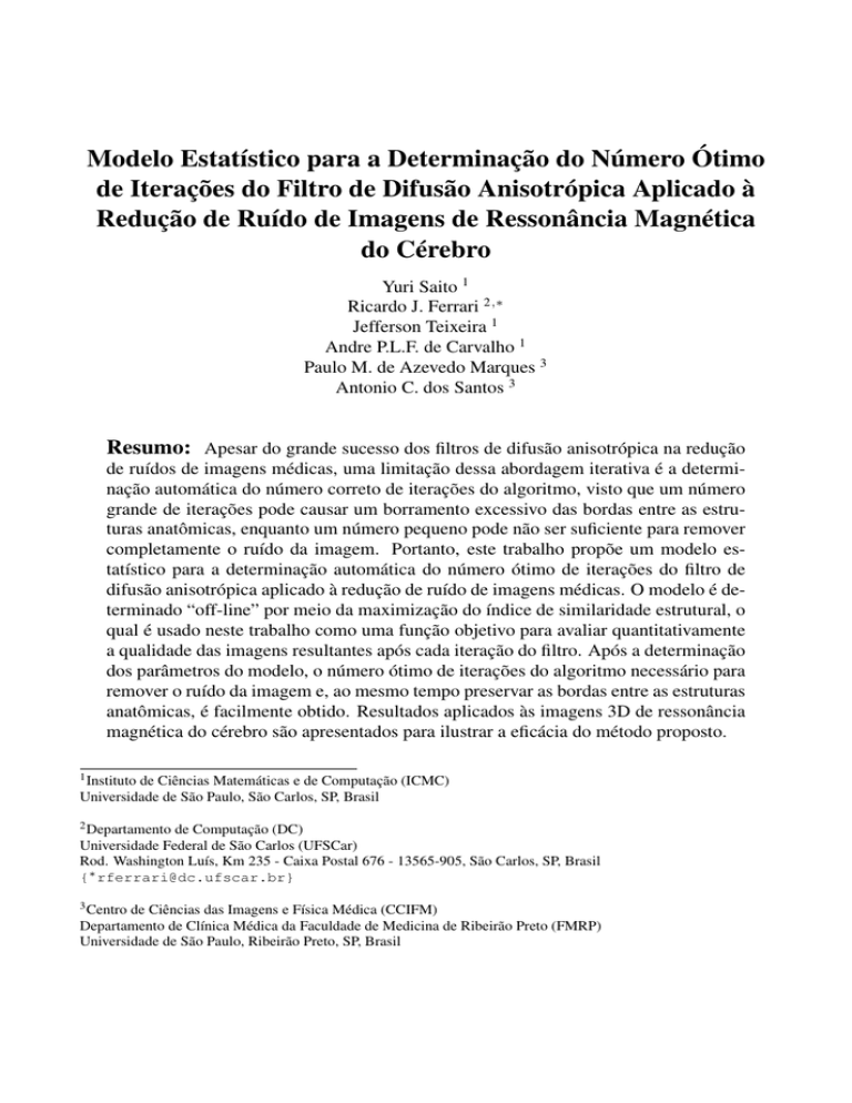 anisotrópica e do índice SSIM, uma discussão sobre os tipos de ruídos que afetam as imagens de RM e, a formulação do modelo estatístico proposto para a determinação do número