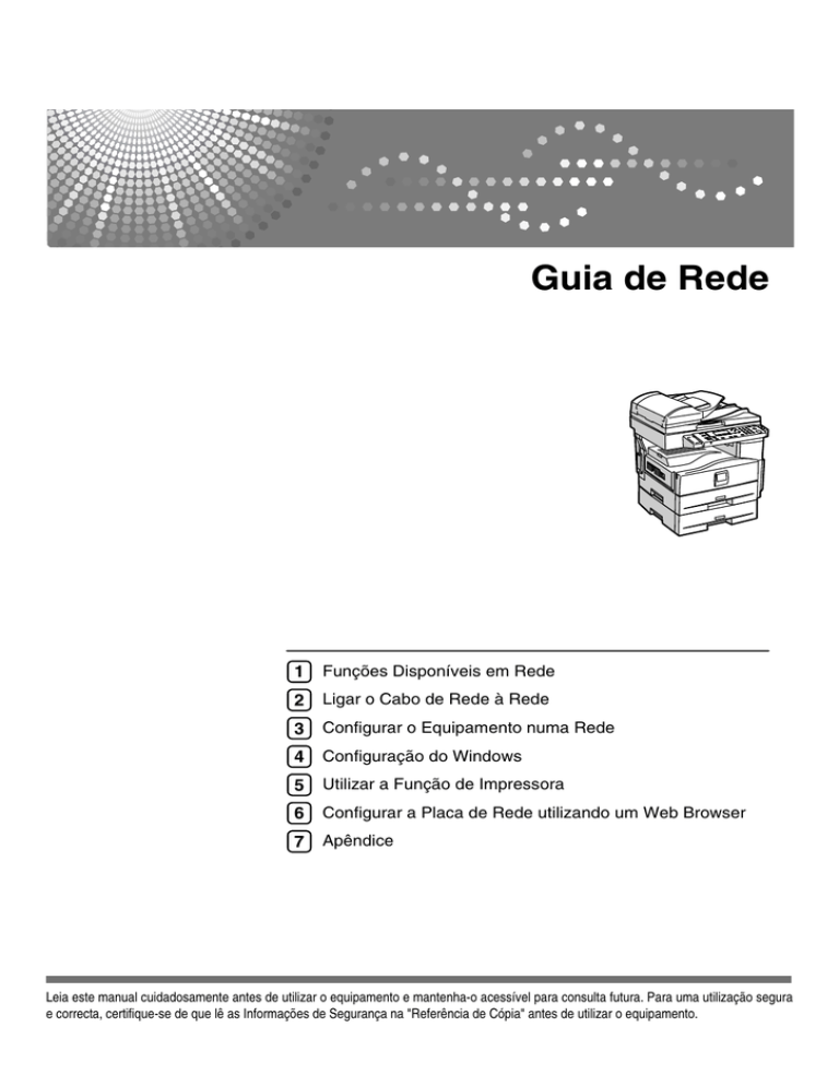 Descreve os procedimentos de configuração do equipamento e dos computadores num ambiente de rede.