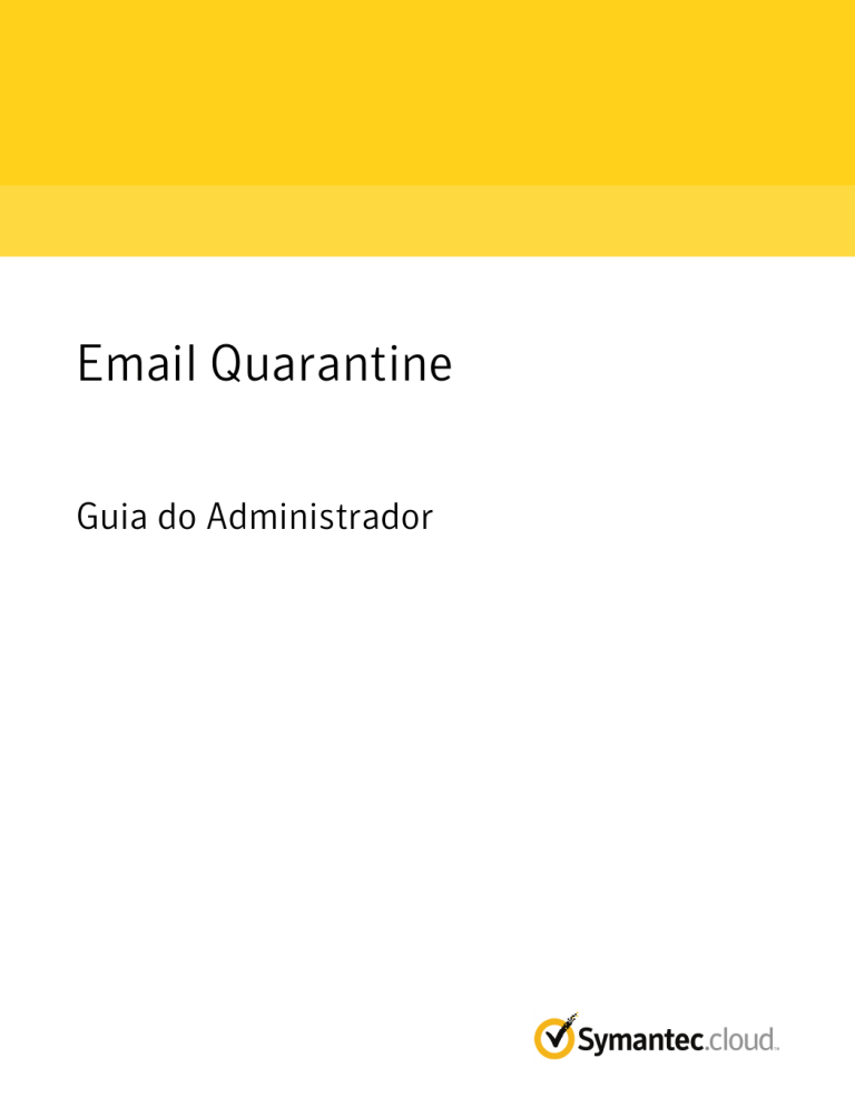 Email Quarantine Guia do Administrador Guia do Administrador do Email Quarantine Versão da documentação: Fase 0 Avisos legais Copyright © 2016 Symantec Corporation. Todos os direitos reservados. Symantec, o logotipo da Symantec e o logotipo da marca de verificação são marcas comerciais ou marcas comerciais registradas da Symantec Corporation ou de suas afiliadas nos EUA e em outros países. Outros nomes podem ser marcas comerciais de seus respectivos proprietários. O produto descrito neste documento é distribuído sob licenças que restringem o uso, a cópia, a distribuição e a descompilação/engenharia reversa. Nenhuma parte deste documento pode ser reproduzida de forma alguma por quaisquer meios sem autorização prévia por escrito da Symantec Corporation e de seus licenciadores, se houver. A DOCUMENTAÇÃO É FORNECIDA "COMO ESTÁ" E TODAS AS CONDIÇÕES, REPRESENTAÇÕES E GARANTIAS EXPRESSAS OU IMPLÍCITAS, INCLUINDO QUALQUER ADEQUAÇÃO COMERCIAL, ADEQUAÇÃO A QUALQUER FIM ESPECÍFICO E DE NÃO INFRAÇÃO, SÃO DESCONSIDERADAS, EXCETO QUANDO TAL PROCEDIMENTO FOR CONSIDERADO LEGALMENTE INVÁLIDO. A SYMANTEC CORPORATION SE ISENTA DE RESPONSABILIDADE POR DANOS INCIDENTAIS OU CONSEQUENTES RELATIVOS AO FORNECIMENTO, EXECUÇÃO OU USO DESTA DOCUMENTAÇÃO. AS INFORMAÇÕES DESTA DOCUMENTAÇÃO ESTÃO SUJEITAS A ALTERAÇÃO SEM AVISO PRÉVIO. O software licenciado e a documentação são considerados softwares comerciais conforme definição da FAR 12.212 e estão sujeitos a direitos restritos conforme definição da FAR seção 52.227-19, “Commercial Computer Software - Restricted Rights" e DFARS 227.7202, etc. "Commercial Computer Software and Commercial Computer Software Documentation", conforme aplicável e quaisquer regulamentações subsequentes, sejam fornecidas pela Symantec como serviços locais ou hospedados. Qualquer uso, modificação, versão de reprodução, apresentação, exibição ou divulgação do Software licenciado e da documentação pelo governo dos EUA deve ser feita somente de acordo com os termos deste Contrato. Symantec Corporation 350 Ellis Street Mountain View, CA 94043 http://www.symantec.com/pt/br/ Suporte técnico Se você precisar de ajuda em algum aspecto dos serviços de segurança que não seja coberto pela Ajuda online ou pelos guias do administrador, entre em contato com seu administrador de TI ou equipe de suporte. Para encontrar os detalhes da equipe de suporte no portal, clique em Suporte > Contato. Sumário Suporte técnico ................................................................................................... 3 Capítulo 1 Sobre o guia ........................................................................... 6 Público e escopo ........................................................................... 6 Versões deste guia ......................................................................... 6 Capítulo 2 Para gerenciar a quarentena do spam ............................. 8 Sobre tarefas de quarentena do spam ................................................ 8 Tarefas da implementação da quarentena ........................................... 9 Antes da ativação do Email Quarantine ....................................... 12 Após a ativação do Email Quarantine ......................................... 12 Capítulo 3 Para acessar e fazer login no Email Quarantine ........... 14 Para acessar o Email Quarantine .................................................... 14 Para fazer login no Email Quarantine ............................................... 15 Capítulo 4 Para gerenciar contas ........................................................ 16 Sobre gerenciar contas .................................................................. Para exibir detalhes de uma conta do Email Quarantine ....................... Para criar novas contas do Email Quarantine ..................................... Para excluir uma conta do Email Quarantine ...................................... Capítulo 5 16 17 18 19 Para gerenciar aliases e grupos de contas .................... 20 Sobre gerenciar aliases e grupos de uma conta ................................. Para gerenciar aliases ................................................................... Para visualizar aliases ............................................................. Para criar aliases ................................................................... Para excluir aliases ................................................................. Para gerenciar grupos de contas ..................................................... Para exibir os grupos de contas ................................................ Para criar grupos de contas ...................................................... Para excluir grupos de contas ................................................... 20 21 21 22 22 23 23 23 24 Sumário Apêndice A Glossário ............................................................................... 25 Glossário .................................................................................... 25 5 Capítulo 1 Sobre o guia Este capítulo contém os tópicos a seguir: ■ Público e escopo ■ Versões deste guia Público e escopo Este guia é para administradores da quarentena. Os administradores da quarentena são usuários do Email Quarantine com privilégios estendidos que permitem a execução de algumas funções administrativas. Ele descreve a função de um administrador da quarentena, orientando-o nas tarefas administrativas. Versões deste guia Este guia está disponível nos seguintes idiomas: ■ Chinês (simplificado) ■ Chinês (tradicional) ■ Dinamarquês ■ Holandês ■ Inglês ■ Francês ■ Alemão ■ Italiano ■ Japonês ■ Coreano Sobre o guia Versões deste guia ■ Português (Brasil) ■ Russo ■ Espanhol ■ Sueco 7 Capítulo 2 Para gerenciar a quarentena do spam Este capítulo contém os tópicos a seguir: ■ Sobre tarefas de quar
