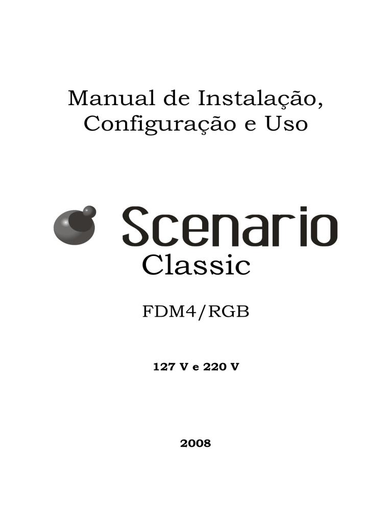 Manual de Instalação, Configuração e Uso Classic FDM4/RGB 127 V e 220 V 2008 Índice 1 Manual de Utilização ....................................................................................... 2 1.1 Apresentação do Painel e identificação das teclas .................................... 2 1.2 Modos de operação do teclado ................................................................... 4 1.3 Utilização no modo “zona” ......................................................................... 5 1.4 Utilização no modo “cena”.......................................................................... 6 1.5 Ajuste do tempo de transição..................................................................... 8 1.6 Ajuste do brilho dos led’s - Teclado Classic ............................................. 11 1.7 Para uma cena não afetar determinados canais ..................................... 11 1.8 Para a tecla desliga não afetar determinados canais.............................. 12 1.9 Bloquear configurações ............................................................................ 13 1.10 Resumo dos bloqueios das configurações ................................................ 16 2 Manual de Instalação..................................................................................... 17 2.1 Apresentação dos equipamentos e identificação das partes ................... 17 2.2 Fixação do Módulo ................................................................................... 18 2.3 Configuração do Controle Remoto ............................................................ 19 2.4 Esquemas de ligação na rede elétrica – FDM4 ........................................ 21 2.5 Ligações dos módulos aos teclados ......................................................... 22 2.5.1 Ligação de um único módulo e diversos teclados. ........................22 2.5.2 Ligação de uma rede com vários módulos e teclados....................23 2.6 Tipos de cargas que podem ser controladas ............................................ 24 2.7 Programação de endereços de teclados e de módulos FDM4 .................. 24 2.7.1 Identificação do endereço dos módulos FDM4 .............................24 2.7.2 Mudança de endereço dos módulos FDM4...................................25 Mudança de endereço do teclado .................................................27 2.7.3 2.7.4 Escolher cenas de 1 a 8 ou de 9 a 15...........................................28 2.8 Configurações dos equipamentos e cargas .............................................. 29 2.8.1 Escolha do tipo de carga .............................................................29 2.9 Conexões Auxiliares ................................................................................. 30 2.9.1 Uso das conexões auxiliares ........................................................32 2.9.2 Ativação das conexões auxiliares .................................................35 2.9.3 Conexão Auxiliar 1 - pulsador .....................................................36 2.9.4 Conexão Auxiliar 1 – de desligado para Cena 7............................37 2.9.5 Conexão Auxiliar 1 – Cena qualquer para Cena 7 ........................38 2.9.6 Conexão Auxiliar 1 – Controle por pulsos ....................................38 2.9.7 Conexão Auxiliar 2 – de desligado ou cena 7 para cena 8.............39 2.9.8 Conexão Auxiliar 2 – cena qualquer para cena 8..........................40 2.9.9 Conexão Auxiliar 2 – Seqüenciador (looping) de cenas .................40 2.9.10 Conexão Auxiliar 2 – De desligado (ou de Cena 7) para Cena 8 durante tempo programado........................................................................42 2.10 Divisão do Módulo .................................................................................... 45 2.10.1 Como configurar a divisão do módulo..........................................45 2.11 Como usar cenas com mais de 4 zonas ................................................... 46 2.11.1 Como configurar para ligação em paralelo ...................................47 2.12 Acionamento do modo CZI........................................................................ 48 2.13 Funções especiais do FDM4/RGB............................................................ 49 2.13.1 Uso do modo RGB .......................................................................49 2.13.2 Looping com tempo de transição fixo ...........................................50 2.13.3 Modo zona alterado .....................................................................51 1 1 MANUAL DE UTILIZAÇÃO 1.1 Apresentação do Painel e identificação das teclas A Figura 1 mostra uma unidade de controle, um teclado montado sobre um espelho. Esta unidade será sempre referenciada aqui como teclado. A figura também identifica as teclas superiores por seus números, de 1 a 8, mais as duas teclas inferiores, de modo e desliga. Cada uma das teclas numeradas, assim como a tecla modo, possui um “led” indicador de atividade. 1 5 2 6 3 7 4 8 Desliga Modo Figura 1 – Teclado Classic Os módulos FDM4 tem 4 canais, mostrados na Figura 2. 2 CH 4 CH 3 B CH 2 G CH 1 R RELE DE CANAL POTÊNCIA MÁXIMA: 350W POR CANAL UTILIZAR RELÉ AUXILIAR PARA POTÊNCIAS SUPERIORES 220V Figura 2 - Canais do módulo FDM4 – esquema 220 V. Em cada canal dos módulos FDM4 podem ser ligadas dois tipos de cargas: • cargas de potência ajustável - lâmpadas fluorescentes com reatores dimerizáveis. Ver capítulo 2.6 – “Tipos de cargas que podem ser controladas”. • cargas do tipo liga/desliga, como lâmpadas fluorescentes não dimerizáveis, acionamento de cortinas, telão, equipamentos de home-theater, motores, etc, que não podem ter sua potência regulada (chamadas “cargas não-reguláveis”). Para cada canal, pode-se escolher que tipo de carga será acionada, e todas as cargas neste canal serão controla