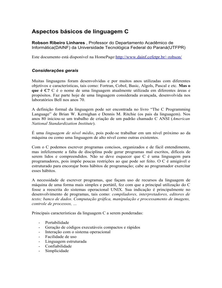 Aspectos básicos de linguagem C