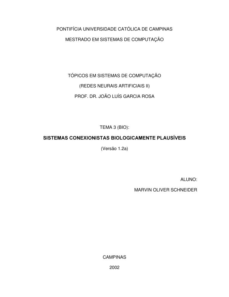 CRÍTICA DA IMPLEMENTAÇÃO EM SISTEMAS CONEXIONISTAS TRADICIONAIS ................................. 2