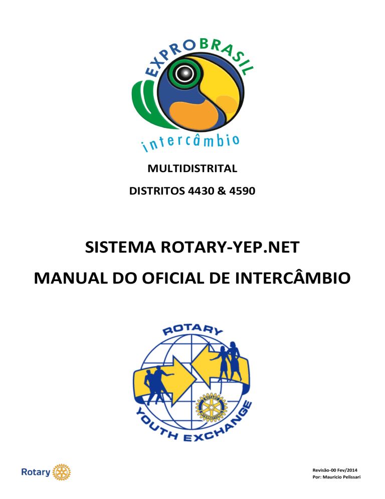 MULTIDISTRITAL DISTRITOS 4430 & 4590 SISTEMA ROTARY-YEP.NET MANUAL DO OFICIAL DE INTERCÂMBIO Revisão-00 Fev/2014 Por: Mauricio Pelissari ÍNDICE Página I- Introdução.................................................................................................................................. 02 II- Processo Interno do Clube........................................................................................................ 03 III- Procedimentos Iniciais............................................................................................................... 03 IV- Acesso ao Sistema rotary-yep.net........................................................................................... 04 V- Cadastro do Candidato no Sistema rotary-yep.net.................................................................. 05 VI- Conferência de Dados no Sistema rotary-yep.net..................................................................... 08 VII- Procedimentos Realizados pelo Candidato............................................................................... 24 VIII- Procedimentos Realizados pelo Oficial de Intercâmbio............................................................ 26 EXPRO BRASIL® DISTRITOS 4430 e 4590 EXPRO BRASIL® INTERCÂMBIO INTERNACIONAL DE JOVENS Av. Higienópolis, 996, 5º andar Sala 509 São Paulo – SP CEP 01.238-910 TEL.: 11 3825-2921 , 11 3829-2947 e 11 9 4815 3333 www.rotaryintercambio.com.br - [email protected] EXPRO BRASIL ® –MANUAL DO COORDENADOR DE ÁREA – REV00 FEV2014 Página 1 de 27 I – INTRODUÇÃO Caros Oficiais de Intercâmbio, A Expo Brasil® desenvolveu este manual com o objetivo de facilitar as ações do Oficiail de Intercâmbio durante o processo de inscrição dos candidatos no processo classificatório para os programas de curta duração e de longa duração. Neste Manual, descrevemos detalhadamente todos os passos para os cadastros e conferências no sistema Rotary-yep.net, bem como os demais passos para o processo de inscrição do Candidato. Em caso de duvidas contate o Coordenador de Área. Obrigado! Equipe Expro Brasil®. EXPRO BRASIL ® –MANUAL DO COORDENADOR DE ÁREA – REV00 FEV2014 Página 2 de 27 II – PROCESSO INTERNO DO CLUBE 1) O Candidato deve procurar um Rotary Club, pertencente ao distrito 4430 ou 4590 que seja o mais próximo de sua residência. 2) Após passar pelos processos internos de seleção do clube o candidato pode iniciar o processo sua inscrição na EXPRO BRASIL® III – PRODIMENTOS INICIAIS 1) Após passar pelos processos internos de seleção do clube, pode-se iniciar o processo de inscrição do candidato na EXPRO BRASIL® 2) O Candidato deve acessar o website www.exprobrasil.com.br e baixar os seguintes documentos: - Formulário de Inscrição do Programa de Curta Duração ou de Longa Duração, dependendo do programa escolhido pelo candidato. - Contrato do Programa de Curta Duração ou de Longa Duração, dependendo do programa escolhido pelo candidato. 3) Com a orientação do oficial de intercâmbio, o candidato deve preencher os seguintes documentos: - Formulário de Inscrição do Programa Curta Duração ou de Longa Duração, dependendo do programa escolhido pelo candidato. - Contrato do Programa de Curta Duração ou de Longa Duração, dependendo do programa escolhido pelo candidato. 4) O candidato deve providenciar todas as assinaturas, com caneta azul, dos seguintes documentos: - Formulário de Inscrição do Programa de Curta Duração ou de Longa Duração, dependendo do programa escolhido pelo candidato. - Contrato do Programa de Curta Duração ou de Longa Duração, dependendo do programa escolhido pelo candidato. 5) O candidato deve digitalizar os documentos abaixo após assinados, em formato pdf, em tamanho A4, e em um único arquivo, tomando cuidado para que não fique torto e nem de ponta cabeça. - Formulário de Inscrição do Programa de Curta Duração ou de Longa Duração, dependendo do programa escolhido pelo candidato. - Contrato do Programa de Curta Duração ou de Longa Duração, dependendo do programa escolhido pelo candidato. 6) O candidato deve entregar o arquivo dos documentos digitalizados para o oficial de intercâmbio 7) O oficial de intercâmbio deve enviar o arquivo dos documentos digitalizados, via e-mail para [email protected], com cópias para Candidato, Chairman e Coordenador de área. 8) Após conferência da documentação, a EXPRO BRASIL® ira enviar o boleto para o pagamento da inscrição, em até 5 dias úteis, para a pessoa indicada no formulário de inscrição. Via e-mail, com cópias para Candidato, Chairman, Coordenador de área e oficial de intercâmbio. 9) Após o recebimento do pagamento do boleto, a EXPRO BRASIL® comunica via e-mail o Oficial de intercâmbio para que faça o cadastro do candidato no sistema ROTARY-YEP.NET, com cópias para Chairman e Coordenador de área. EXPRO BRASIL ® –MANUAL DO COORDENADOR DE ÁREA – REV00 FEV2014 Página 3 de 27 IV – ACESSO AO SISTEMA ROTARY-YEP.NET 1) Todos os usuários acessam ao sistema Rotary-yep.net da mesma forma A - O Coordenador irá receber um email proveniente de: Rotary Youth Exchange, contendo sua senha para acesso ao sistema Rotaryyep.net. A Acesse o site: www.rotary-yep.net 01 - Selecione : Database 01 02 - Selecione : Login Dbase Outra opção é acessar o link : http://database.rotary-yep.net 02 03 04 05 03 - No campo : Username:, digite seu Endereço de e-mail. 04 - No campo : Password:, digite sua senha. 05 - Selecione : Login EXPRO BRASIL ® –MANUAL DO COORDENADOR DE ÁREA – REV00 FEV2014 Página 4 de 27 V – CADASTRO DO CANDIDATO NO SISTEMA ROTARY-YEP.NET 1) Após receber um e-mail da EXPRO BRASIL®, solicitando o cadastramento do candidato no sistema Rotary-yep.net, o oficial de intercâmbio deve realizar o cadastro do candidato da seguinte forma: Após Acessar o seu cadastro 01 – Selecione: Student Applicant 01 As informações abaixo se referem ao Candida