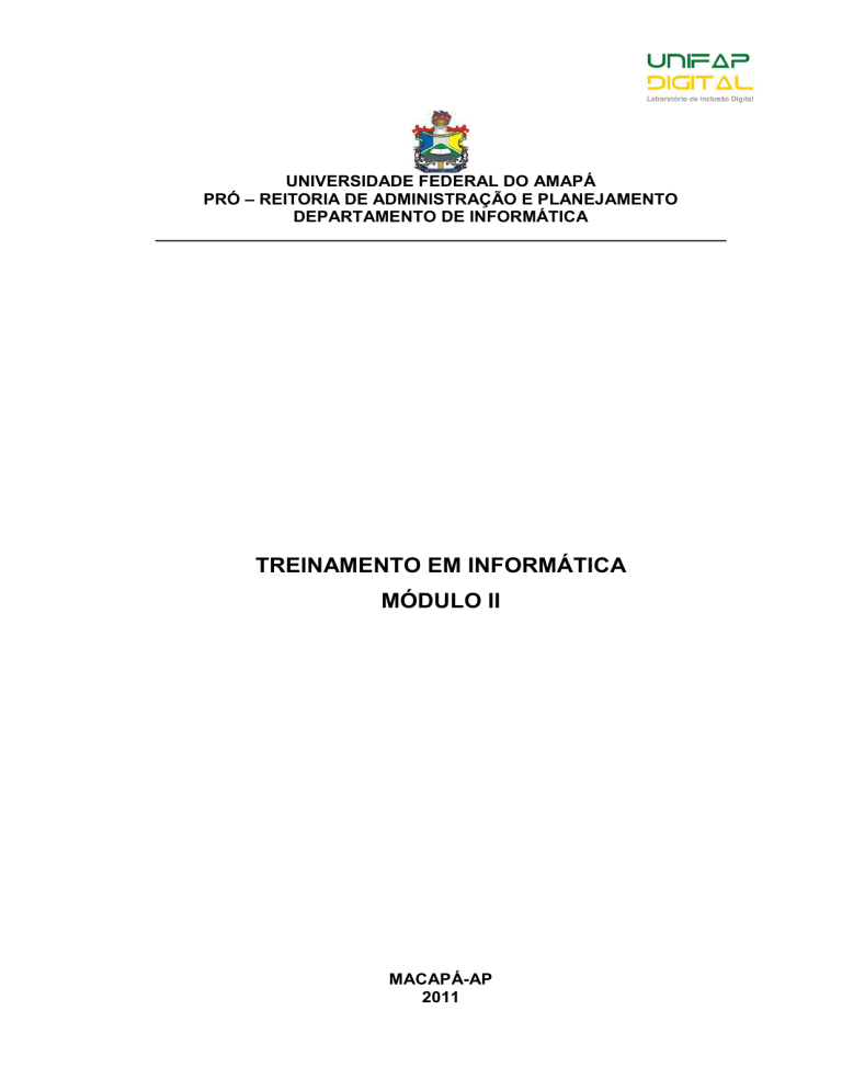 UNIVERSIDADE FEDERAL DO AMAPÁ PRÓ – REITORIA DE ADMINISTRAÇÃO E PLANEJAMENTO DEPARTAMENTO DE INFORMÁTICA __________________________________________________________________ TREINAMENTO EM INFORMÁTICA MÓDULO II MACAPÁ-AP 2011 UNIVERSIDADE FEDERAL DO AMAPÁ PRÓ – REITORIA DE ADMINISTRAÇÃO E PLANEJAMENTO DEPARTAMENTO DE INFORMÁTICA __________________________________________________________________ TREINAMENTO EM INFORMÁTICA – INTERNET E E-MAILS MACAPÁ-AP 2011 UNIVERSIDADE FEDERAL DO AMAPÁ PRÓ – REITORIA DE ADMINISTRAÇÃO E PLANEJAMENTO DEPARTAMENTO DE INFORMÁTICA __________________________________________________________________ SUMÁRIO 1. MÓDULO II.................................................................................. 1.1. CONCEITO E HISTÓRIA DA INTERNET.........................................5 1.1.2. O que é Internet?....................................................................................5 1.1.3. Conceitos básicos de Internet.................................................................6 1.1.4. Servidor...................................................................................................6 1.1.5. URL (Universal Resource Locator).........................................................6 1.1.6. Site..........................................................................................................6 1.1.7. Páginas da Web......................................................................................6 1.1.8. Word Wide Web......................................................................................7 1.1.9. Domínio...................................................................................................7 1.2. O NAVEGADOR (BROWSER)........................................................................8 1.2.1. Barra de Endereço..................................................................................9 1.2.2. Elementos da Página da Web................................................................12 1.2.3. Pesquisa na Internet...............................................................................14 1.3. E-MAIL.............................................................................................................17 1.3.1. Provedores de E-mail..............................................................................17 1.3.2. Criando uma Conta de E-mail.................................................................18 1.3.3. Acessando uma Conta de E-mail............................................................19 1.3.4. Lendo E-mails..........................................................................................23 1.3.5. Escrevendo um E-mail.............................................................................25 1.4. FERRAMENTAS DA INTERNET....................................................................27 1.4.1. Lista de Discussão.................................................................................27 1.4.2. Fóruns....................................................................................................28 1.4.3. Comunidades Virtuais............................................................................28 1.4.4. Blogs......................................................................................................29 1.4.5. compras on-line.....................................................................................30 1.4.6. Chat (Bate-Papo)...................................................................................30 1.4.7. Programas de Mensagem Instantânea..................................................32 1.4.8. Skype.....................................................................................................34 1.4.9. Fazendo Download................................................................................34 1.5. REFERÊNCIAS...............................................................................................37 1. MÓDULO II 1.1. CONCEITO E HISTÓRIA DA INTERNET A internet foi idealizada na década de 60 com o objetivo de trocas e compartilhamento de informações, voltadas para a pesquisa e fins militares. A partir da II Guerra Mundial, o interesse de vários países no desenvolvimento e aprimoramento de computadores, aumentou enormemente. Além disso, buscava-se uma forma rápida e segura de compartilhamento de informações. Visto que, uma vez implementada, a internet seria extremamente útil para pesquisas e para colaboração com pesquisadores de outros locais. Em 1969 foi colocado em funcionamento a ARPANET, o nome que se dava naquela época à internet. Ela começou em algumas universidades americanas, com o passar do tempo, e com o sucesso que a rede foi tendo, o número de adesões foi crescendo a cada ano. Mas na época era extremamente complicado lidar com isso e somente poucas instituições a possuíam. No entanto, com a elaboração de softwares e interfaces cada vez mais fáceis de manipular, as pessoas foram se encoraja ndo a participar da rede. O grande atrativo da internet era a possibilidade de se trocar e compartilhar idéias, estudos e informações com outras pessoas que, muitas vezes nem se conhecia pessoalmente. 1.1.2. O que é a Internet? A internet é um sistema mundial de redes de computadores interconectados. A Internet é uma rede mundial de computadores interligados através de linhas de telefone, linhas de comunicação privadas, cabos submarinos, canais de satélite, etc... Pode ser definida também como rodovia pela qual a informação contida em textos, som e imagem pode trafegar em alta velocidade entre qualquer computador conectado a essa rede. E por essa razão que a Internet é muitas vezes chamada da "super rodovia da informação". 1.1.3. Conceitos básicos da Internet 1.1.4. Servidor Servidor é um computador que fornece serviços a uma rede de computadores. Esses serviços podem ser, por exemplo, servidor de documentos, servidor de cor
