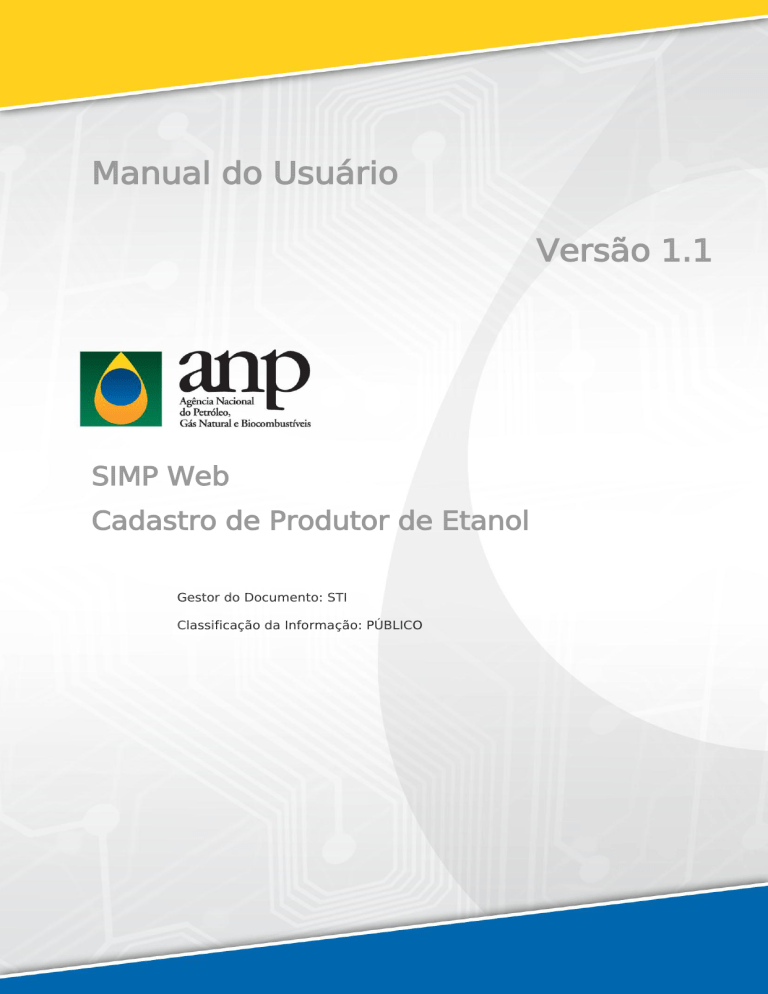 Manual do Usuário Versão 1.1 SIMP Web Cadastro de Produtor de Etanol Gestor do Documento: STI Classificação da Informação: PÚBLICO Manual do Usuário Cadastro de Produtor de Etanol HISTÓRICO DE REVISÕES Data Versão Descrição 16/08/2012 1.0 19/02/2014 1.1 26/02/2014 1.2 28/06/2016 1.3 Versão disponibilizada na internet junto com a entrada do sistema em ambiente de produção. Atualização devido a mudanças na aplicação para nova arquitetura e para atender a modificação na resolução: O manual foi totalmente modificado tanto no formato quanto no conteúdo. Atualização solicitada pela SRP após avaliação: 4.1.7: excluído o 3º parágrafo (“Em um primeiro...”). 4.1.9.: atualizado texto do 1º parágrafo; retirado o código de envio das informações de endereço pára cobrança. 4.2.: excluído item número da ficha cadastral. Atualização de imagens solicitada pela SRP devido a mudanças no sistema. Pág. 2 de 29 Manual do Usuário Cadastro de Produtor de Etanol SUMÁRIO 1. INTRODUÇÃO............................................................................................................................................. 4 2. COMO ESTÁ ORGANIZADO O MANUAL ................................................................................................. 4 3. FUNCIONALIDADES GERAIS DO SISTEMA ............................................................................................ 5 3.1. Itens de Tela................................................................................................................................. 5 4. FUNCIONALIDADES DO SISTEMA ........................................................................................................... 8 4.1. Incluir Ficha Cadastral do Produtor de Etanol ....................................................................... 8 4.2. Consultar Ficha Cadastral do Produtor de Etanol ............................................................... 27 4.3. Atualizar a Ficha Cadastral do Produtor de Etanol ............................................................. 28 4.4. Cancelar Ficha Cadastral do Produtor de Etanol ................................................................ 29 ANEXO ................................................................................................................................................. 29 Mensagens do Sistema .................................................................................................................... 29 Pág. 3 de 29 Manual do Usuário Cadastro de Produtor de Etanol 1. INTRODUÇÃO A proposta deste documento é orientar e esclarecer os usuários no uso das funcionalidades do sistema desenvolvido pela Agência Nacional do Petróleo, Gás Natural e Biocombustíveis (ANP) para o Cadastro de Produtor de Etanol, conforme previsão expressa na Resolução ANP n° 26/2012, publicada no Diário Oficial da União em 31/08/2012, que regulamenta a atividade de produção de etanol. Este sistema está integrado ao SIMP Web, módulo do Sistema de Informações de Movimentação de Produtos (SIMP) utilizado para o cadastro de agentes econômicos regulados pela ANP. 2. COMO ESTÁ ORGANIZADO O MANUAL Este manual está organizado de forma a guiar o usuário através do sistema, descrevendo os passos que este deverá tomar para poder cadastrar e atualizar junto à ANP os dados referentes a um Produtor de Etanol, de forma a cumprir o disposto na Resolução ANP n° 26/2012. As funcionalidades do sistema estão descritas passo a passo, acompanhadas de um modelo exemplificativo da tela que será exibida. Em passos: 1. 2. 3. 4. um primeiro momento, para ter acesso ao sistema, deve-se seguir os seguintes Acessar a Central de Serviços da ANP (CSA). Instalar a Cadeia de Certificados. Solicitar Acesso. Efetuar o Acesso Restrito. Para efetuar os próximos acessos, é necessário: 1. Acessar a CSA. 2. Efetuar o Acesso Restrito. Todas as informações referentes ao funcionamento da Central de Serviçõs da ANP, descritas acima, devem ser consultadas em documentação de referência, não estando contidas neste manual. Após o acesso, o usuário pode: 1. Incluir a Ficha Cadastral. 2. Consultar a Ficha Cadastral 3. Alterar a Ficha Cadastral 4. Imprimir a Ficha Cadastral 5. Cancelar a Ficha Cadastral (dependendo da situação da ficha) Pág. 4 de 29 Manual do Usuário Cadastro de Produtor de Etanol 3. FUNCIONALIDADES GERAIS DO SISTEMA 3.1. Itens de Tela O sistema para Cadastro de Produtor de Etanol é organizado através de uma estrutura de abas, cada uma contendo uma série de campos a serem preenchidos pelo usuário, que pode navegar através das abas clicando em sua Identificação na área superior da tela, ou através dos botões Anterior e Próximo na área inferior. O sistema para Cadastro de Produtor de Etanol é organizado através de uma estrutura de opções de acesso das partes que compõem a Ficha. Cada uma contêm uma série de campos a serem preenchidos pelo usuário. Abaixo, seguem as indicações dos tipos de itens que são exibidos na tela. Item da Página Formatar Letras Imprimir Usuário Logado Sair do Sistema Excluir Imagem Descrição Opções para alterar o tamanhos das letras do sistema para melhor visualização. O “A+” aumenta a letra, o “A-“ dimunui as letras e o “AA” coloca as letras no tamanho original. Opção para a impressão da página que está sendo visualizada. Exibe o nome do usuário que está acessando o sistema. Opção que realiza o logoff e retorna a página pública do CSA. Opção para exclusão dos dados da linha a qual o ícone está relacionado. Exibido dentro uma lista. Editar Caixa de seleção Exibir Topo,Menu e Corpo Exibir Menu e Corpo Opção para alteração dos dados da linha a qual o ícone está relacionado. Exibido dentro uma lista. Opção que possibilita ao usuário selecionar um ou mais itens. Exibe a aplicação com o topo, Menu e Corpo. Exibe a aplicação com o Menu e Corpo. Exibir 