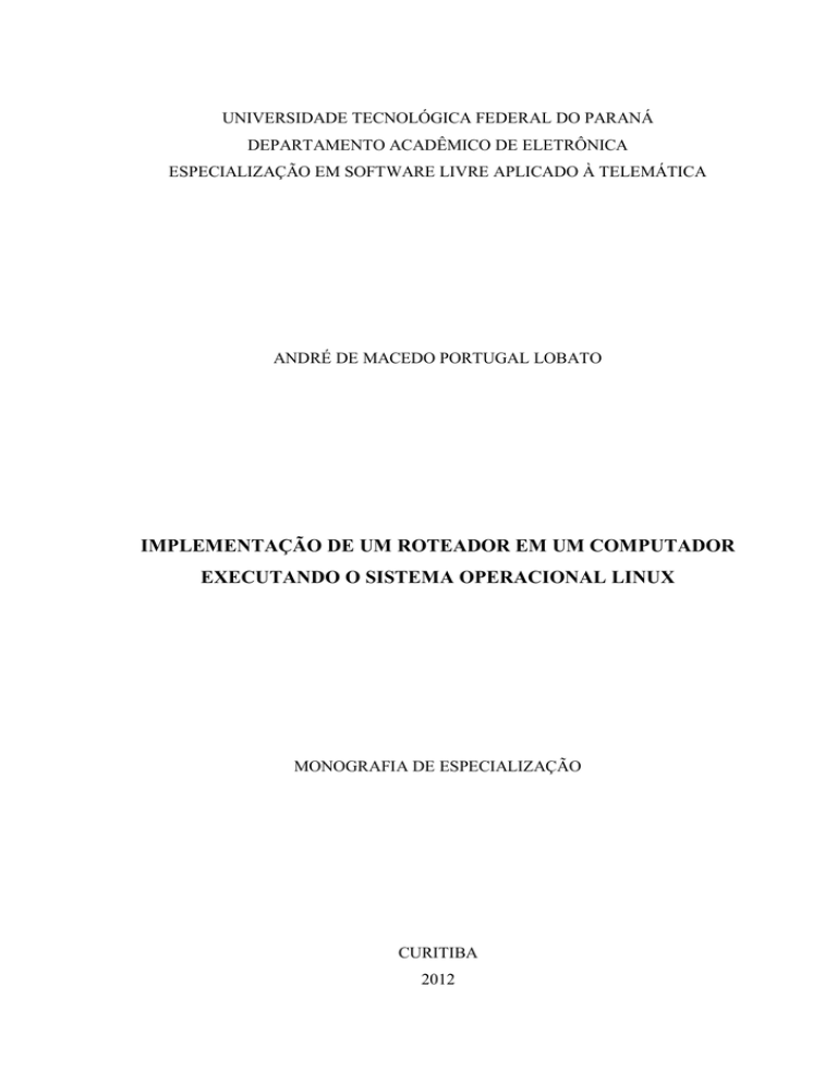 LOBATO, André de M. P. Implementação de um roteador em um computador