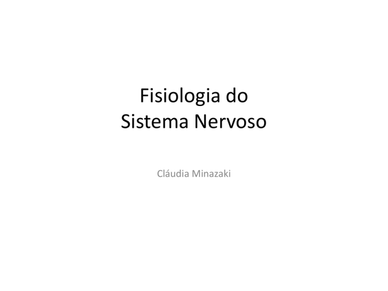 Fisiologia do Sistema Nervoso Cláudia Minazaki Conteúdo para estudar: 1. SNC e SNP 2. Classificação fisiológica: sistema nervoso somático e visceral (órgãos e estruturas de constituição e funções) 3. Organização do sistema nervoso – Neurônios – Fibras Nervosas (mielínicas e amielínicas) – Feixes e tratos nervosos 4. Sinapses (conceitos, tipos, funcionamento, neurotransmissores) Introdução • Participa de processos cognitivos complexos e de ações de controle que podem ser executadas. • Recebe milhões de informações por minuto provenientes de diferentes órgãos e nervos sensoriais, ocorrendo uma integração visando determinar respostas a serem executadas pelo corpo Neurologia Neurologia • Especialidade da Medicina que estuda as doenças estruturais do Sistema Nervoso Central (composto pelo encéfalo e pela medula espinal) e do Sistema Nervoso Periférico (composto pelos nervos e músculos), como seus envoltórios (que são as meninges). • Alteração neuroanatômica ou neurofisiológica que produz manifestações clínicas, que devem ser interpretadas pelo diagnóstico anatômico ou topográfico. Classificação do Sistema Nervoso Classificação do Sistema Nervoso SNP SNC Encéfalo Medula espinhal • Integram e correlacionam muitos tipos de informação sensorial que chegam • Ocorrem pensamentos, emoções, memórias • Maior parte dos impulsos que estimulam a contração de músculos e secreção glandular Tecido Nervoso fora do SNC • • • • • Nervos cranianos Ramos Nervos espinhais e ramos Gânglios Receptores sensoriais Divisão Anatômica SNCentral (SNC): • Encéfalo • Medula Espinhal SNPeriférico(SNP): • Nervos • Gânglios (agregados de céls nervosas) Neurônios Sensoriais – AFERENTES (A=direção a / Ferrent=condução) Interneurônios= função integrativa (neurônios de associação) Neurônios Motores – Motoneurônios ou EFERENTES (E= para longe de) Classificação do Sistema Nervoso SN Somático (receptores e neurônios somáticos e dos sentidos especiais) SNAutônomo (receptores e neurônios sensoriais autonômicos) SNEntérico (receptores e neurônios sensoriais e plexos entéricos) MLiso Glândulas Células endócrinas do TGI Neurônios Motores Somáticos (voluntários) Músculo esquelético SNC Neurônios Motores Autonômicos (involuntários) Músculo Liso Músculo cardíaco Glândulas Tecido Adiposo • Sistema Nervoso Central é composto: – Encéfalo ou cérebro (dentro do crânio) – Medula espinal (dentro da coluna vertebral) – Conjunto é envolvido pelas meninges (interior circula o líquido cefalorraquidiano- (LCR), dentro de compartimentos denominados ventrículos cerebrais e espaço subaracnóideo). Encéfalo compreende: » » » » » » » » hemisférios cerebrais gânglios da base Tálamo vias ópticas eixo hipotálamo-hipofisário glândula pineal tronco cerebral cerebelo. Funções principais • Detecção, análise e transmissão de informações • Estabilidade do organismo Medula espinhal Na transição entre o crânio e a coluna vertebral: – encéfalo dá continuidade à medula espinal (originam as raízes e os nervos periféricos, que por sua vez terminam nos músculos). Meninges Divisão sensorial do Sistema Nervoso • Receptores sensoriais (olhos, audição, tato, outros) • Podem causar reação cerebral imediata ou a informação pode ser armazenada na forma da memória (por minutos, semanas, anos) determinando uma reação na data futura Divisão somática do sistema sensorial • Transmite informação sensorial proveniente de receptores de superfície corpórea e de estruturas de localização profunda • Informação chega ao SNC pelos Nervos Periféricos sendo conduzida imediatamente para múltiplas áreas sensoriais localizadas: 1. 2. 3. 4. Todos os níveis da medula espinhal Na formação reticular do bulbo, ponte e mesencéfalo No tálamo Áreas do córtex cerebral Divisão Motora do Sistema Nervoso - Efetores • Papel mais importante do sistema nervoso: • Controlar as diversas atividades do corpo • Funções motoras do sistema nervoso: • Contração dos músculos esqueléticos apropriados por todo o corpo; • Contração da musculatura lisa dos órgãos internos; • Secreção de substâncias químicas pelas glândulas exócrinas e endócrinas (ação em diversas partes do corpo) EFETORES • Estruturas anatômicas que verdadeiramente executam as funções ditadas pelo sistema nervoso (músculos e glândulas) Neuroeixo motor “esquelético” do sistema nervoso • Controla a contração da musculatura esquelética • Tem ação em paralelo o sistema nervoso autônomo (controla mm lisa, glândulas e outros sistemas internos do corpo) Eixo neural motor esquelético do sistema nervoso Controle do mm esquelético em diferentes níveis do SNC 1. Medula espinhal 2. Formação da substância reticular bulbar, ponte e mesencéfalo 3. Gânglios da base 4. Cerebelo 5. Córtex motor Cada porção executando sua própria função: Regiões Superiores: comanda movimentos musculares complexos com propósitos controlados por processos cognitivos cerebrais Regiões inferiores: responsáveis principalmente pelas respostas automáticas instantâneas aos estímulos sensoriais. Processamento das informações- Função integrativa do sistema nervoso Importante função do SN: • Processar as informações aferentes para que sejam efetuadas as respostas mentais e motoras apropriadas • Mais de 99% das informações sensoriais são descartadas pelo cérebro como irrelevantes e sem importância (ex. contato do corpo com vestimenta, pressão exercida pela cadeira sobre nosso corpo quando sentamos, ruído perpétuo relegado ao subconsciente) Funções integrativas do sistema nervoso Canalização e processamento de informações • Importante informação sensorial – imediatamente canalizada para regiões integrativas e motoras apropriadas do cérebro – promover respostas 